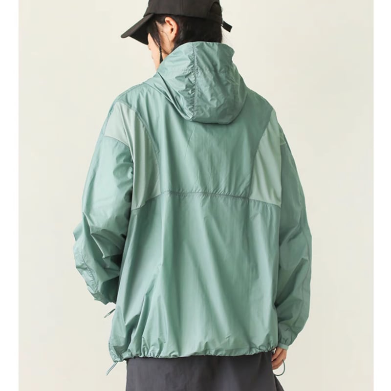 ロングスリーブで紫外線対策もバッチリ。フードで日差しを遮り、快適に過ごせます。オーバーサイズのシルエットは、体型を気にせずリラックスして着用できます。普段使いはもちろん、旅行やアウトドアにも最適です。一枚で着こなしの幅が広がる、便利なアイテムです。