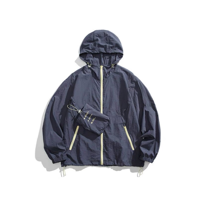 コンパクトに収納できるジップジャケットは、持ち運びやすさが魅力です。旅行やアウトドア、ちょっとした外出など、様々なシーンで活躍します。コンパクトに収納できるため、バッグに入れてもかさばらず、急な天候変化にも対応できます。