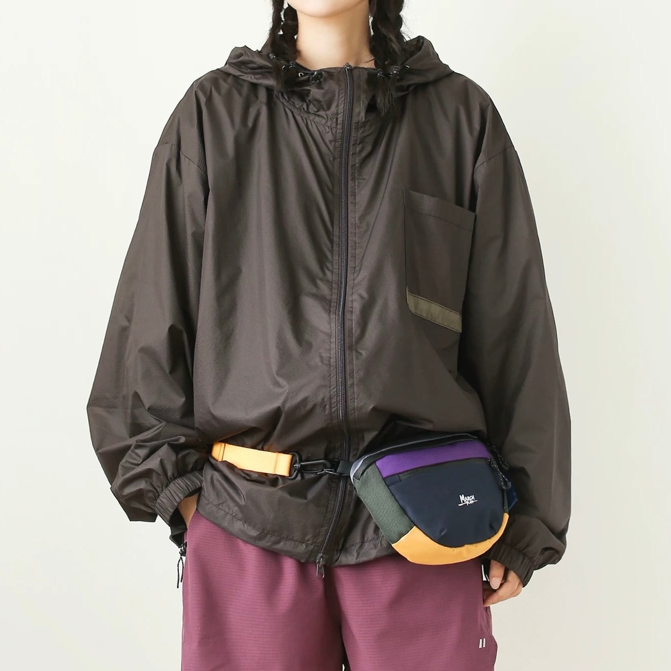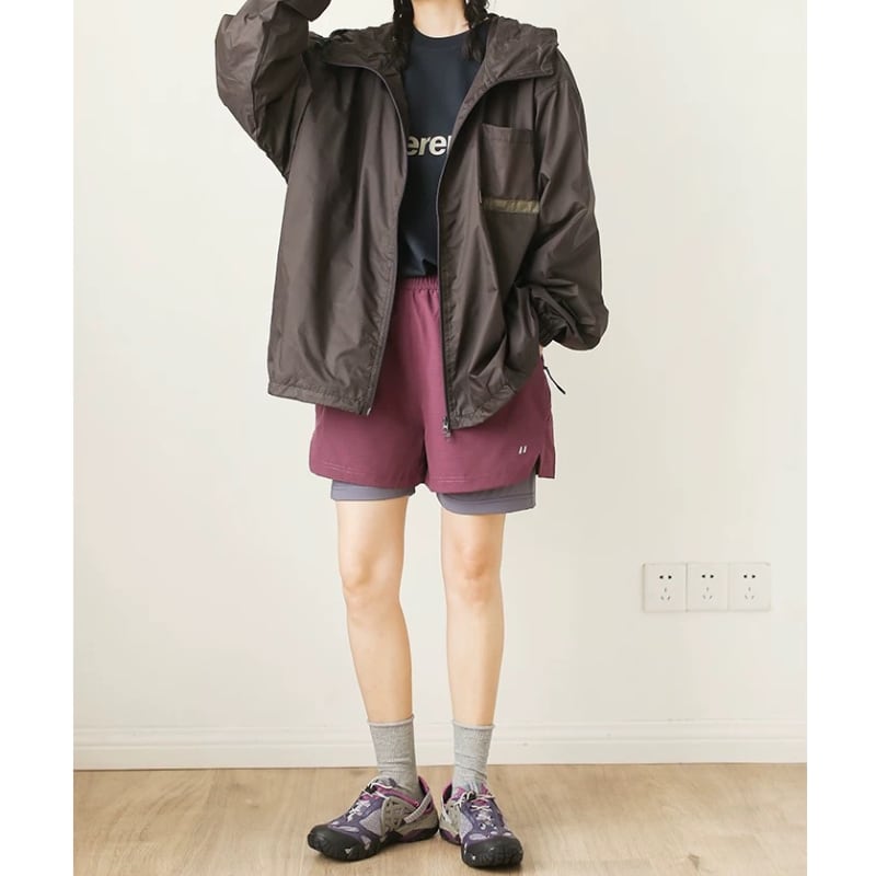 フード付きジッパージャケットは、ドロップショルダーのデザインが特徴です。ゆったりとしたシルエットで、リラックスした着心地を実現。普段使いはもちろん、アウトドアシーンにも活躍します。ジッパー付きのポケットも装備されており、スマートフォンなどの収納にも便利です。