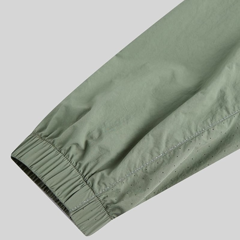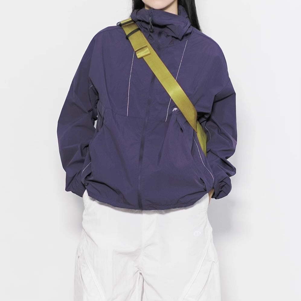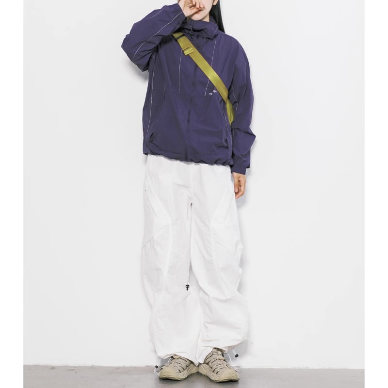 軽快な着心地とすっきりとしたシルエットが魅力のジップアウター。フード付きで急な天候変化にも対応でき、ドロップショルダーがリラックス感を演出します。撥水性と軽量性を兼ね備えており、普段使いはもちろん、アウトドアシーンでも頼れる一着です。