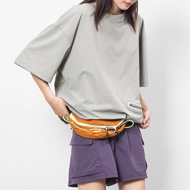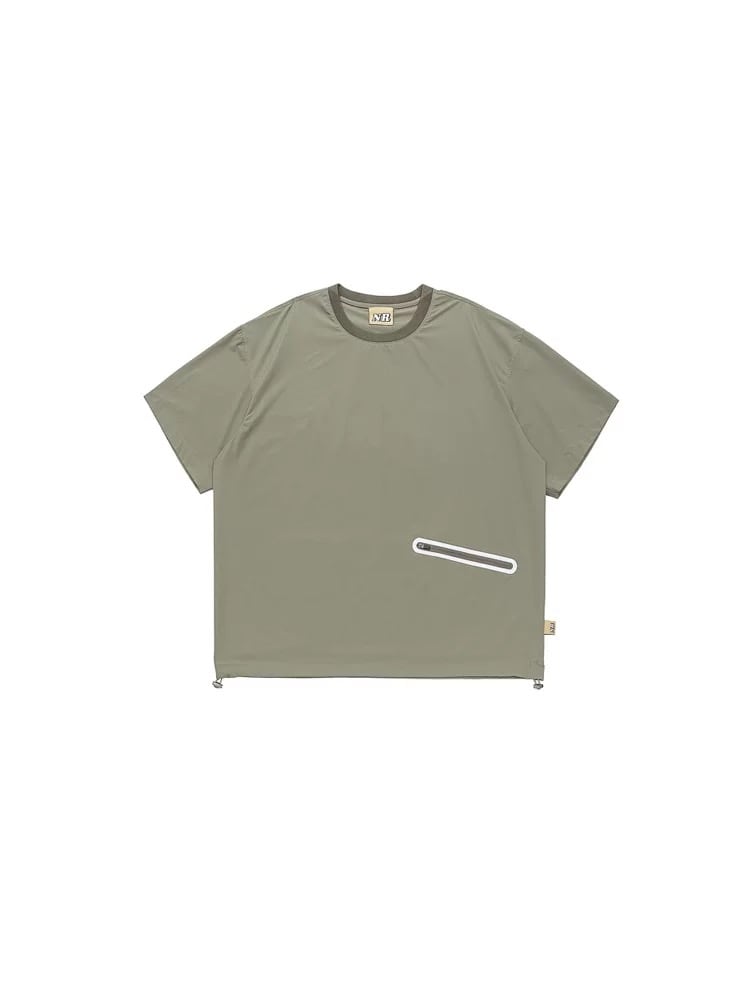 シンプルなクルーネックデザインに、ドローストリングと便利なジッパーポケットを備えた半袖Tシャツ。ボックスシルエットでゆったりとした着心地が魅力です。普段使いはもちろん、アクティブなシーンにも活躍します。