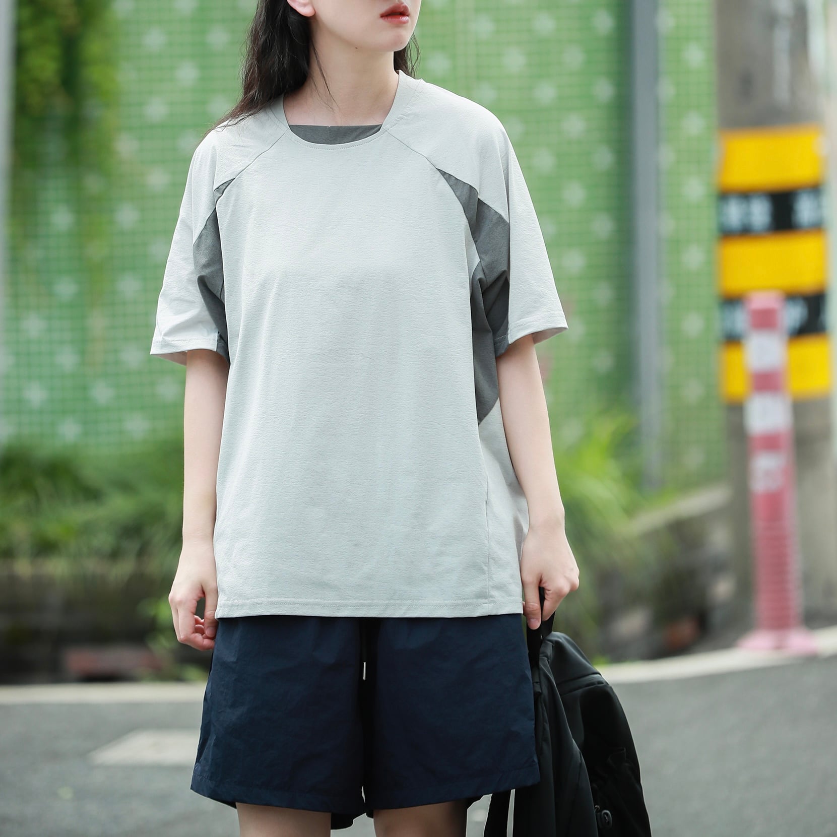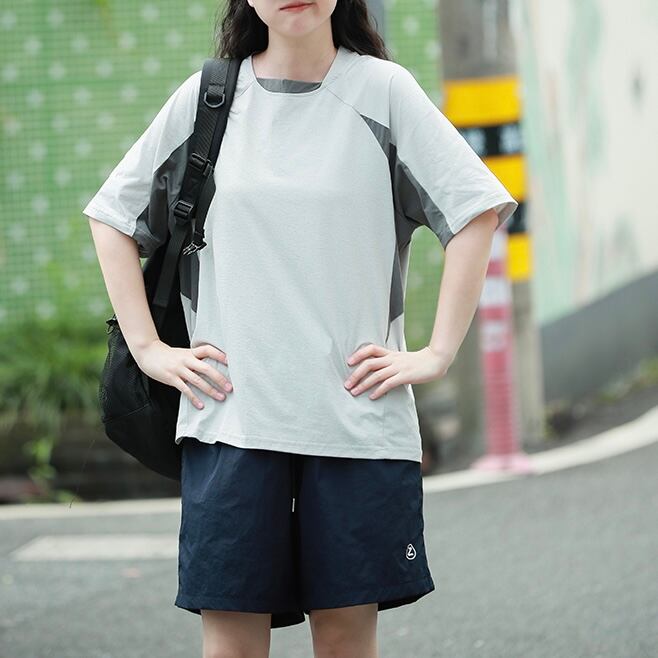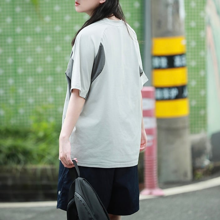 ラグランスリーブにバイカラー切り替えを施したスポーティーなTシャツ。 ゆったりとしたシルエットで、普段使いからアクティブなシーンまで幅広く快適に着られる一枚です。