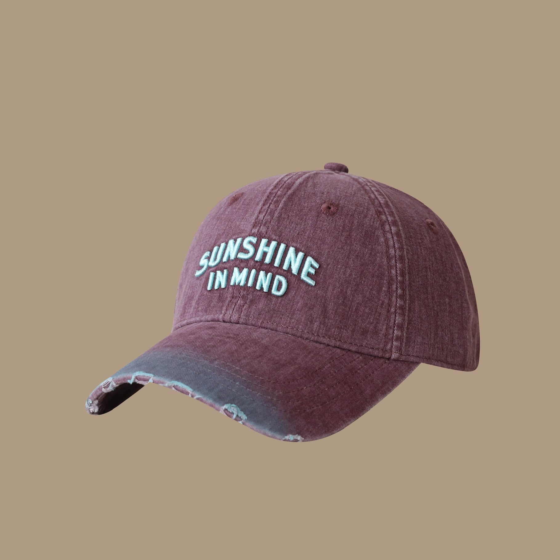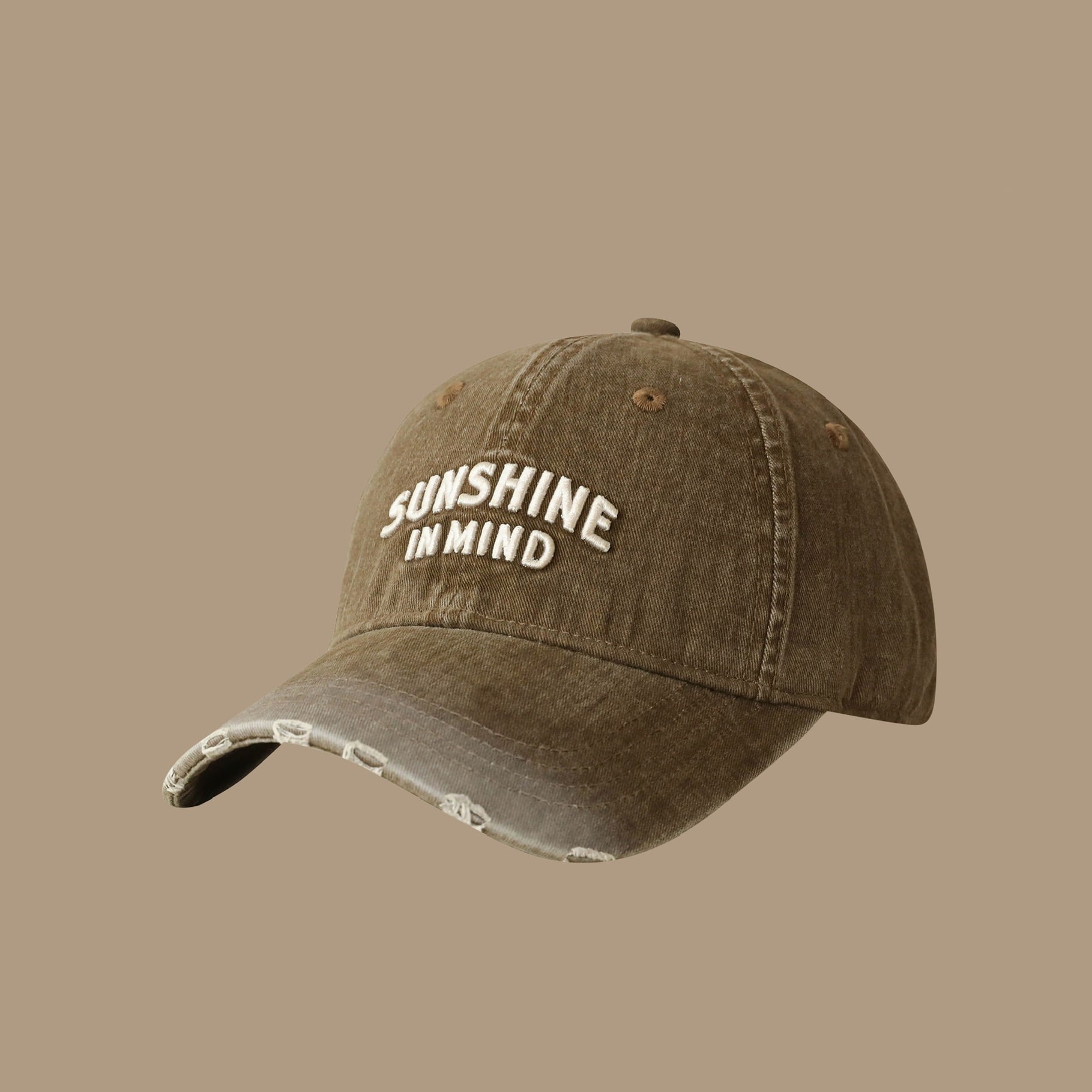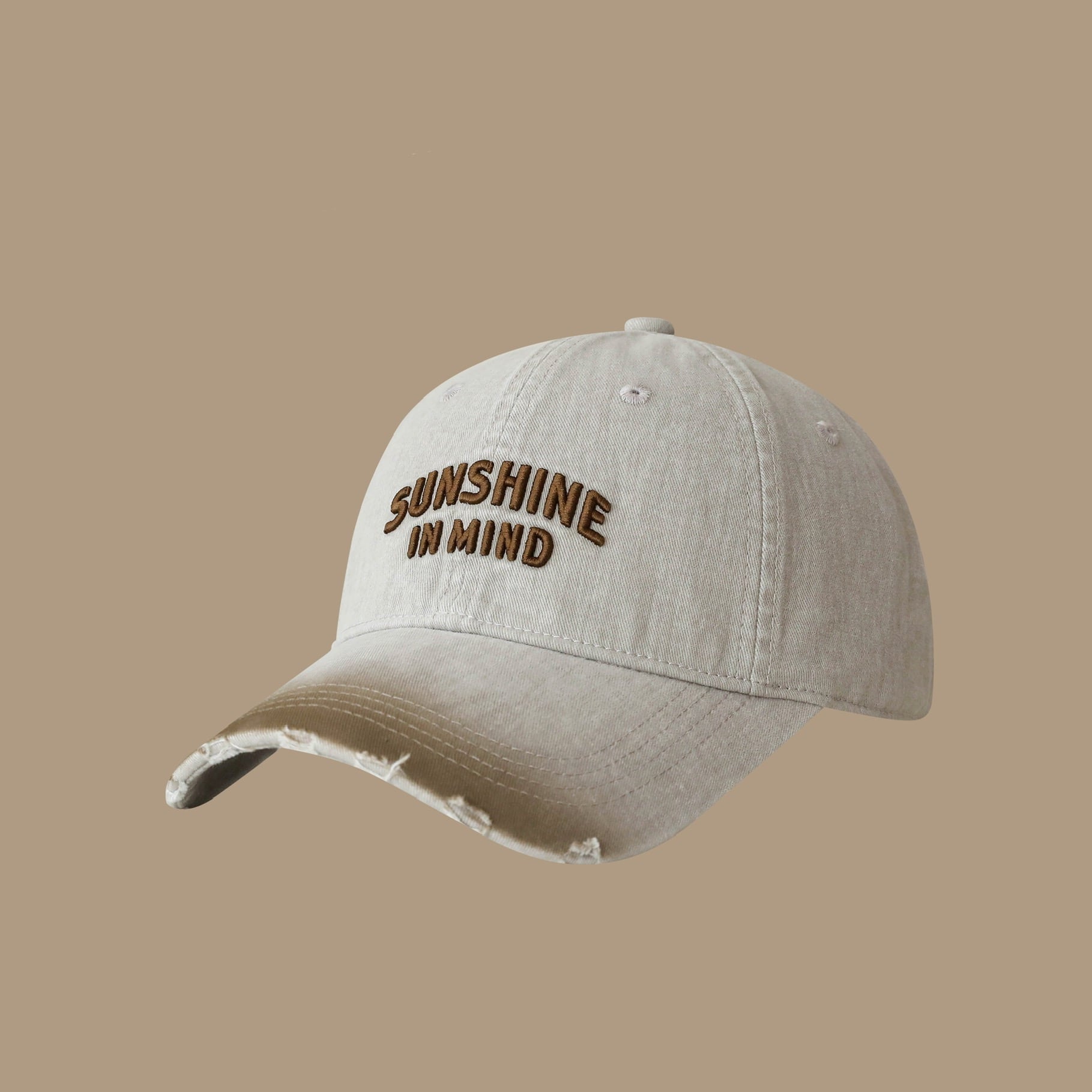 フロントの「SUNSHINE IN MIND」ロゴ刺繍が程よいアクセントになります。