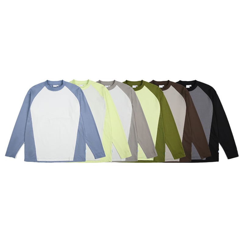 クルーネックとラグランスリーブの組み合わせが、着やすさとこなれた雰囲気を両立。