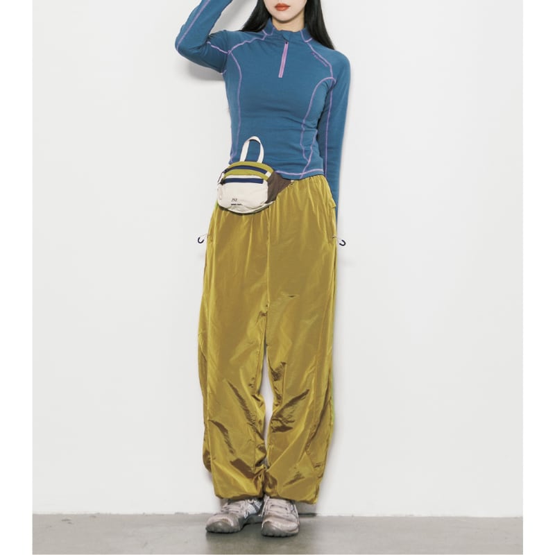 ハーフジップとスタンドカラーが特徴的なステッチスポーツプルオーバー。