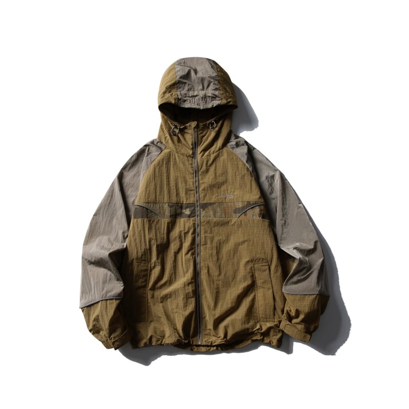 カモフラージュ柄をアクセントに取り入れたジップジャケット。