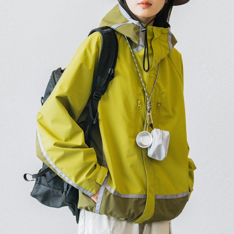 フードや裾には調節コードが付いており、シーンに合わせてフィット感を変えることができます。
