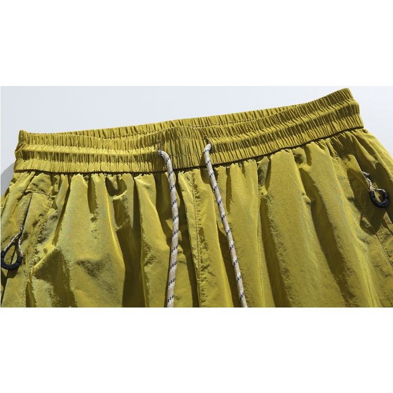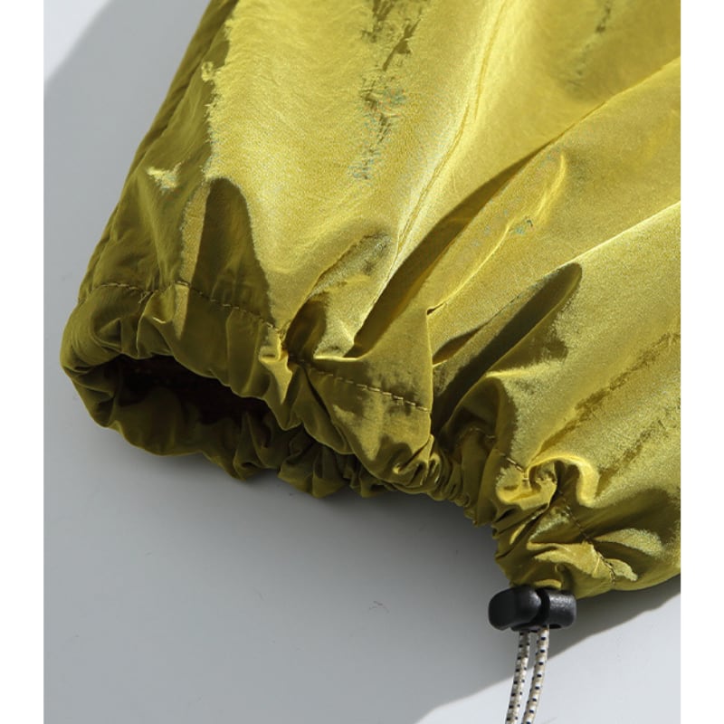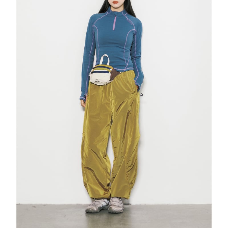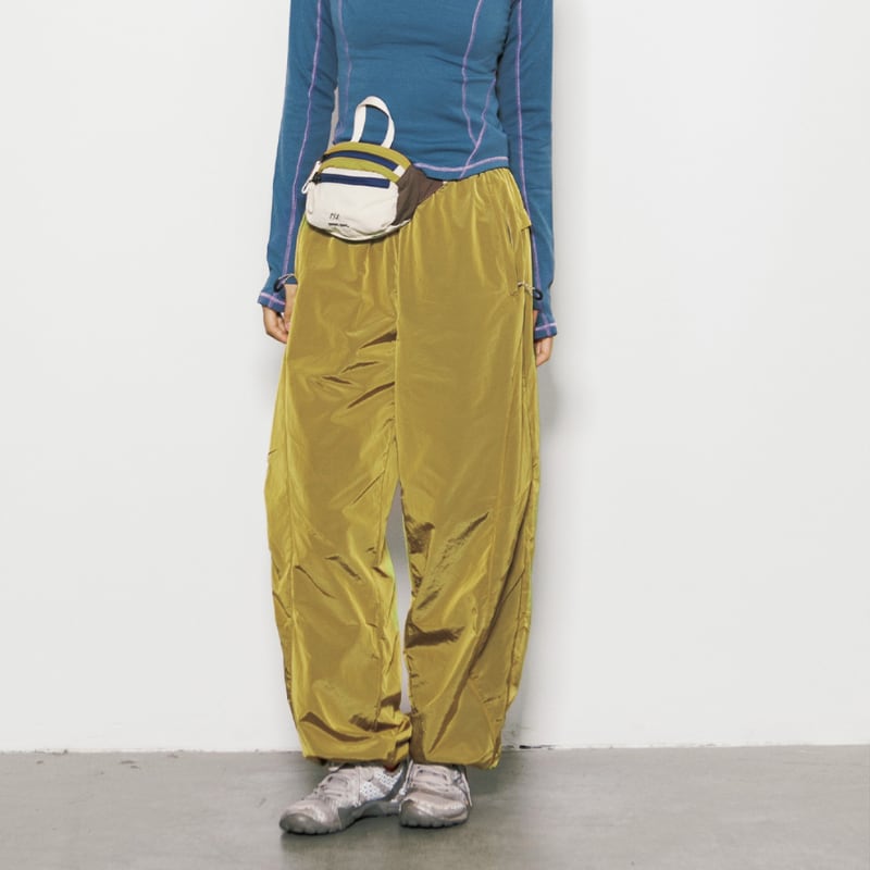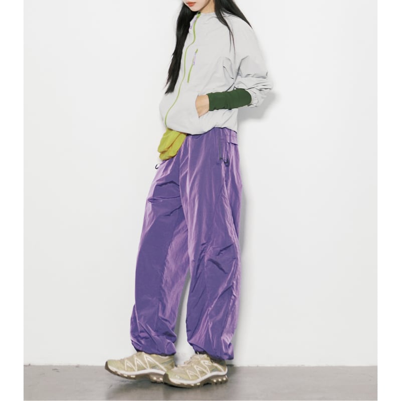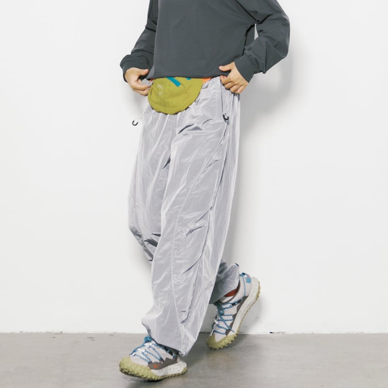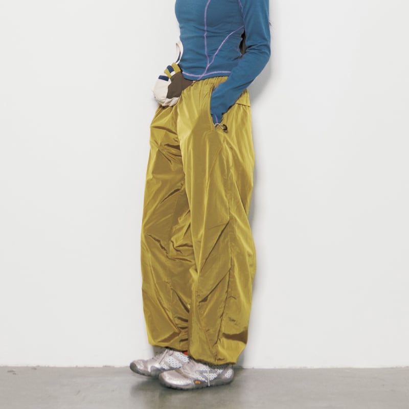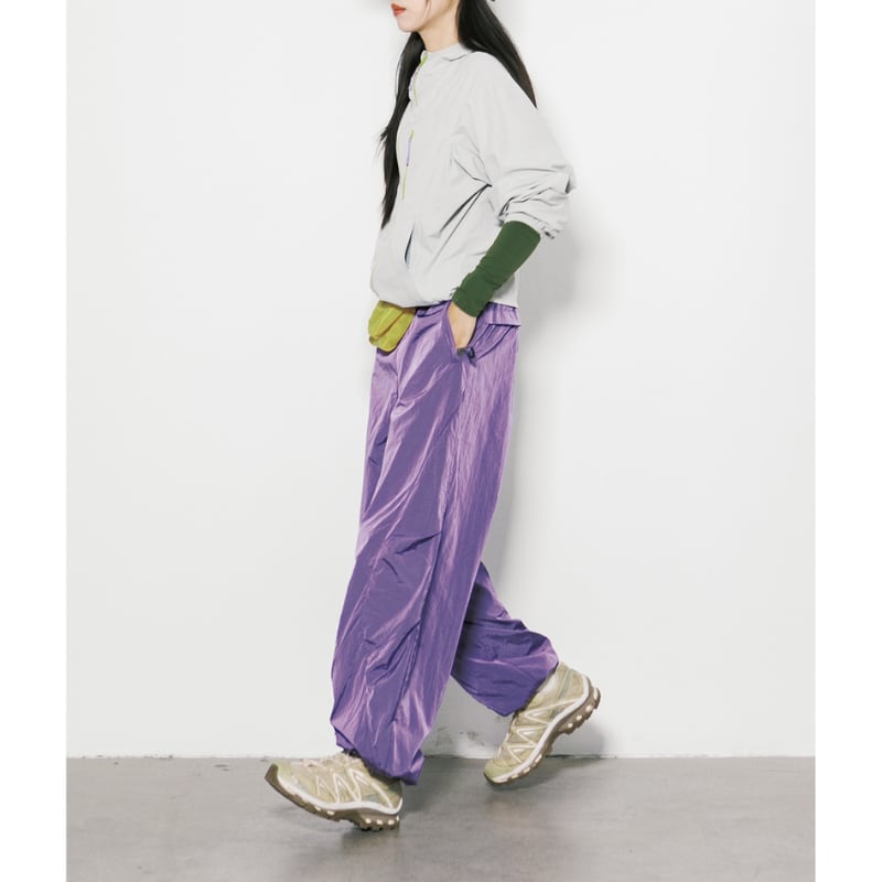 存在感のあるカラーがスタイリングを引き立てるパラシュートパンツ。