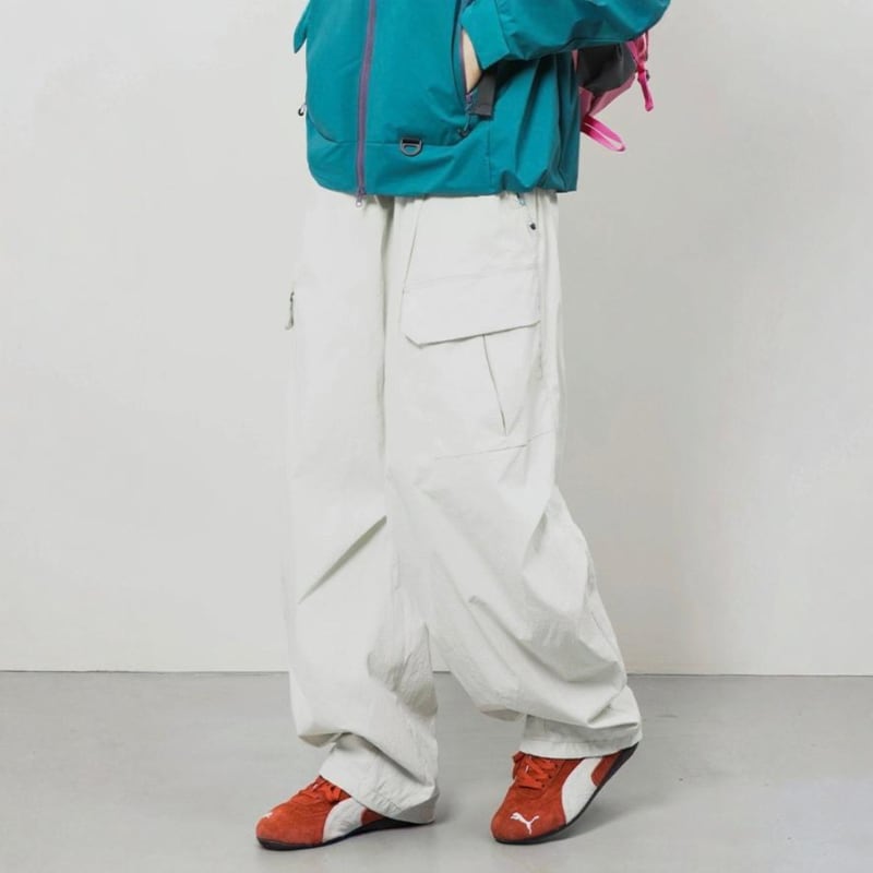 サイドのカーゴポケットは収納力があり、デザインのアクセントにもなります。