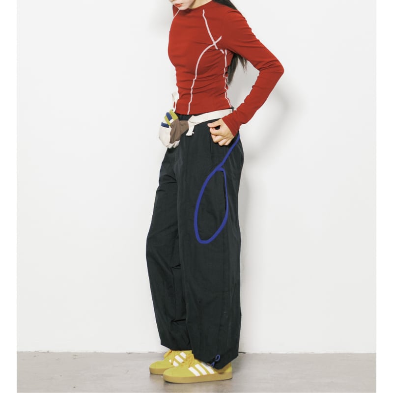 ゆったりとしたシルエットで仕上げたナイロンパンツです。