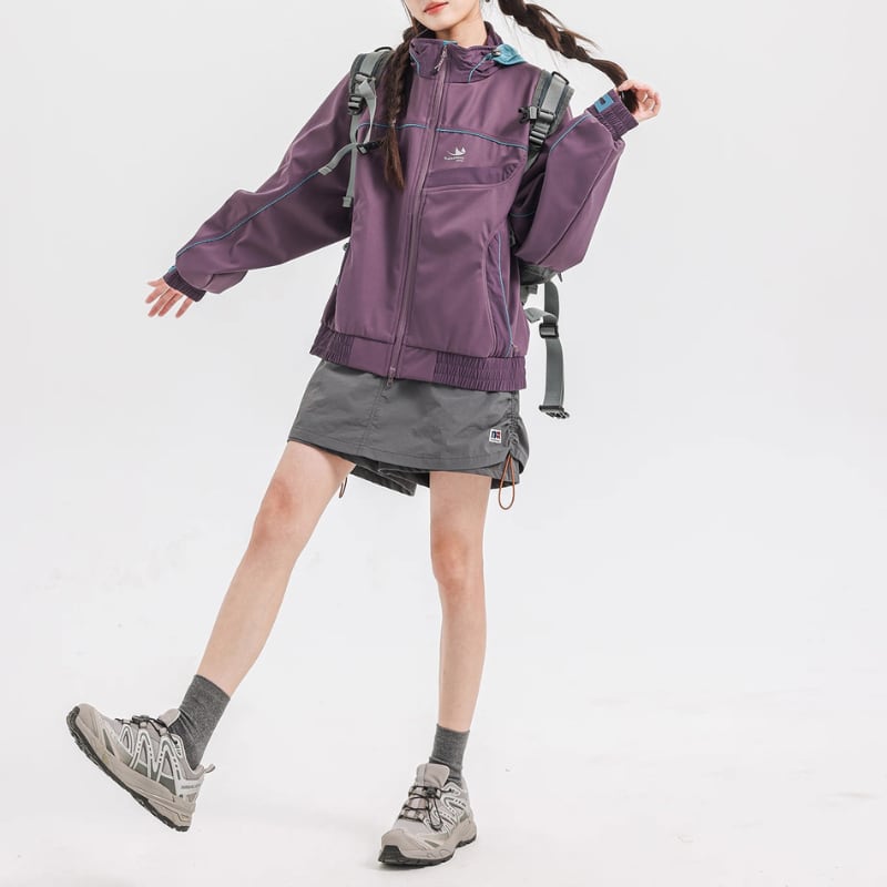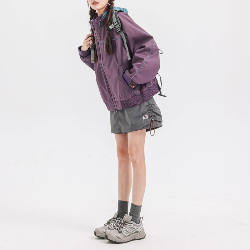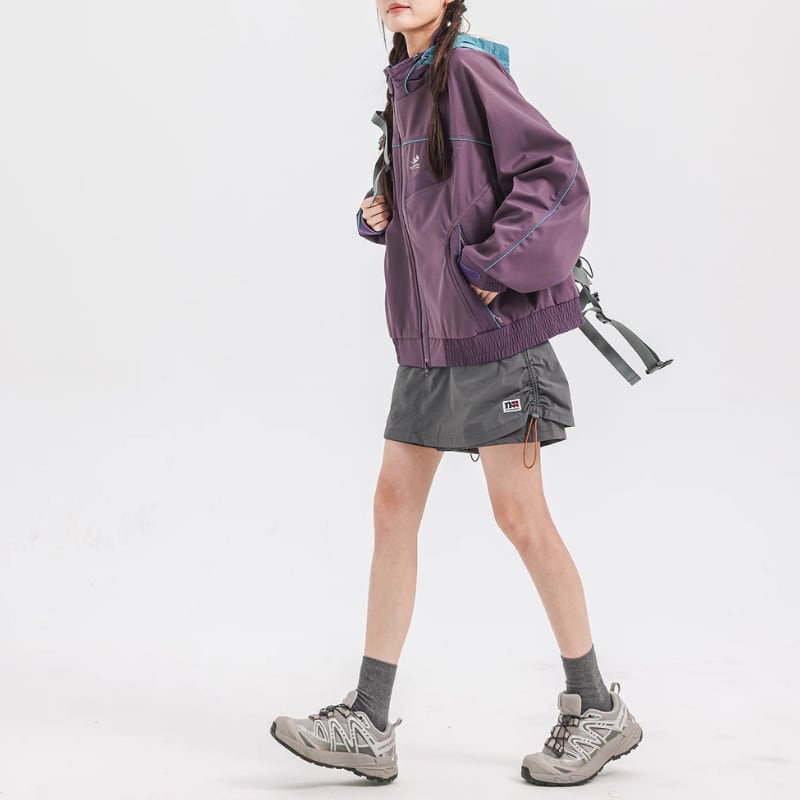 フードや袖口にアクセントカラーを配し、デザイン性と機能性を両立。