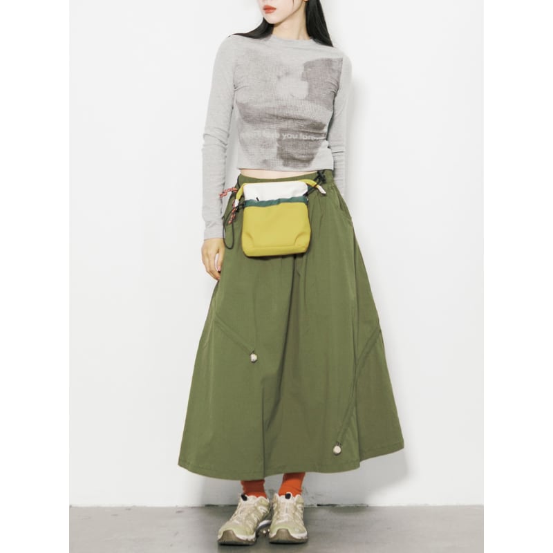 実用性とデザイン性を兼ね備えた、アウトドア仕様のロングスカート。