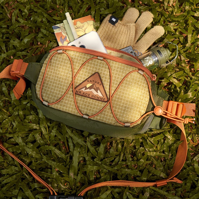 マウンテンロゴがアクセントになったアウトドアウエストバッグ。