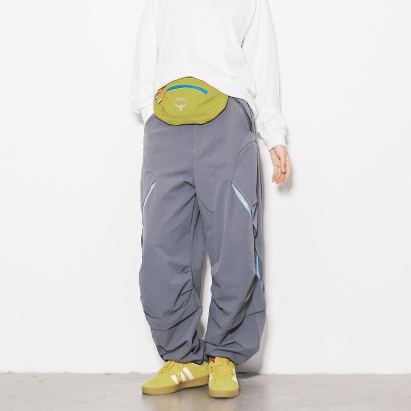 程よいボリューム感と立体的なシルエットが特徴のナイロンパンツ。