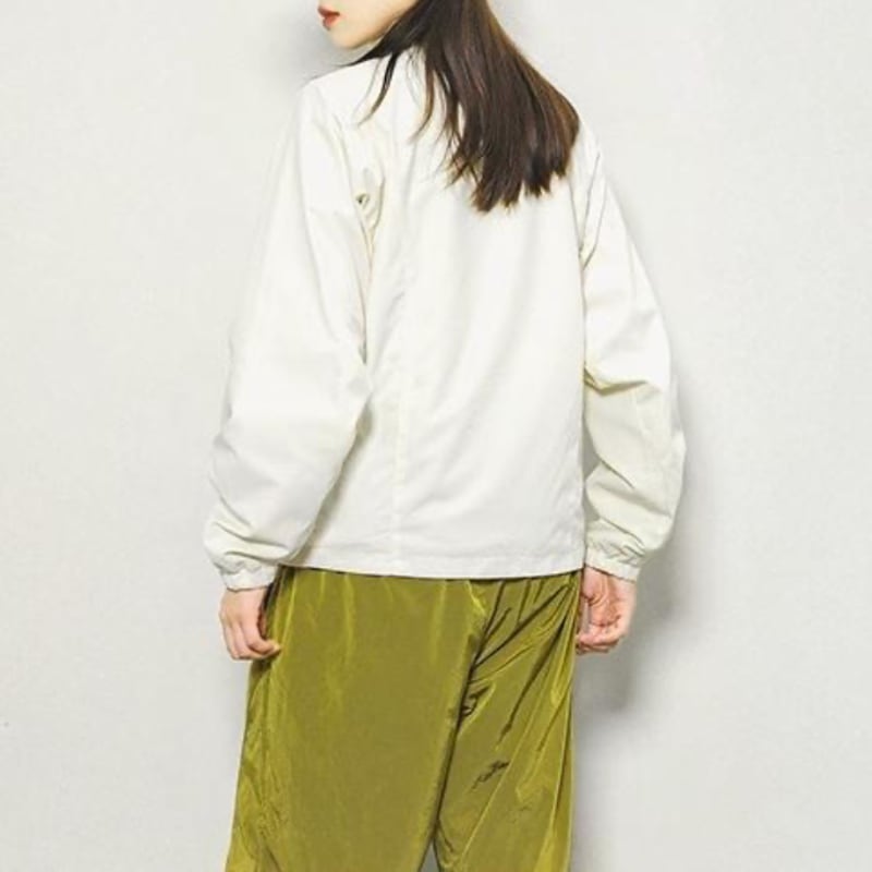 ゆったりとしたシルエットにスタンドカラーを合わせ、すっきりとした印象に。