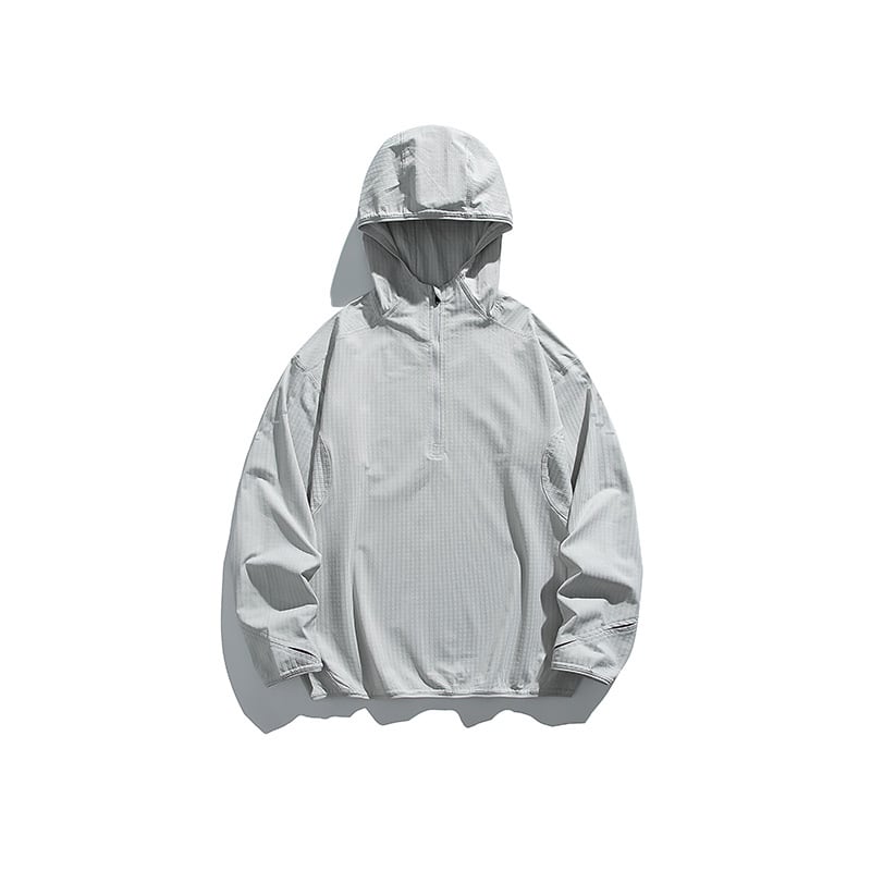 フード付きのデザインがスポーティーな雰囲気をプラスし、カジュアルにもアウトドアにも活躍します。
