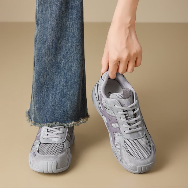 通気性のある素材と立体的なパネルデザインで、アクティブな印象に。