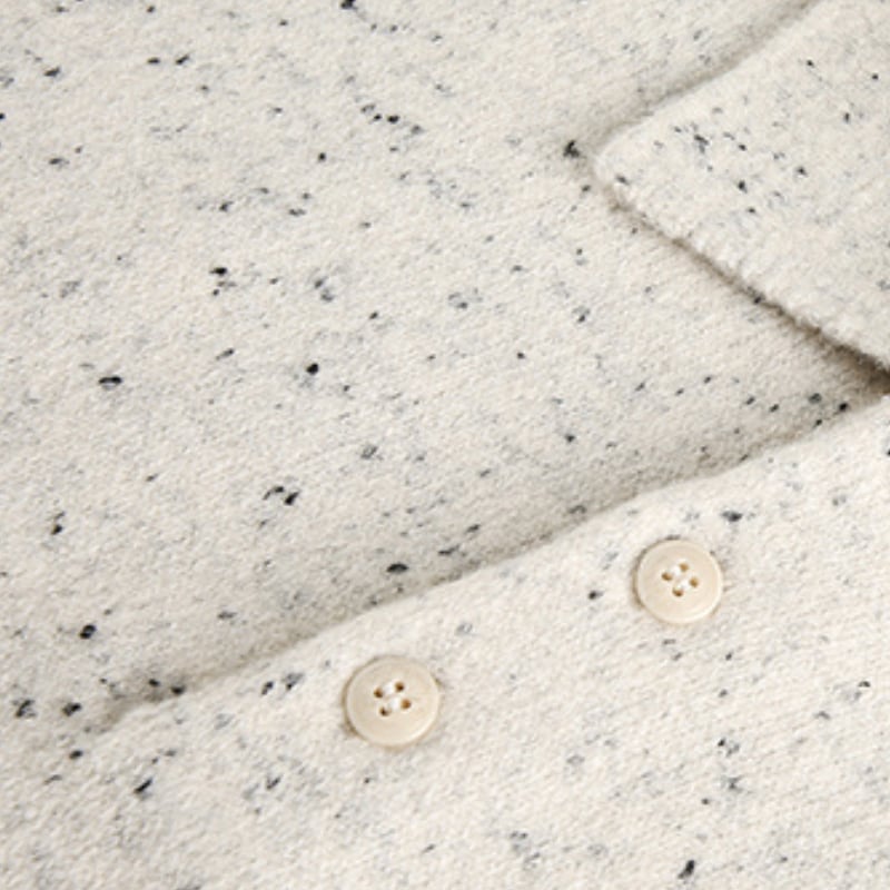 大きめの襟とフロントボタンがクラシックな印象をプラス。