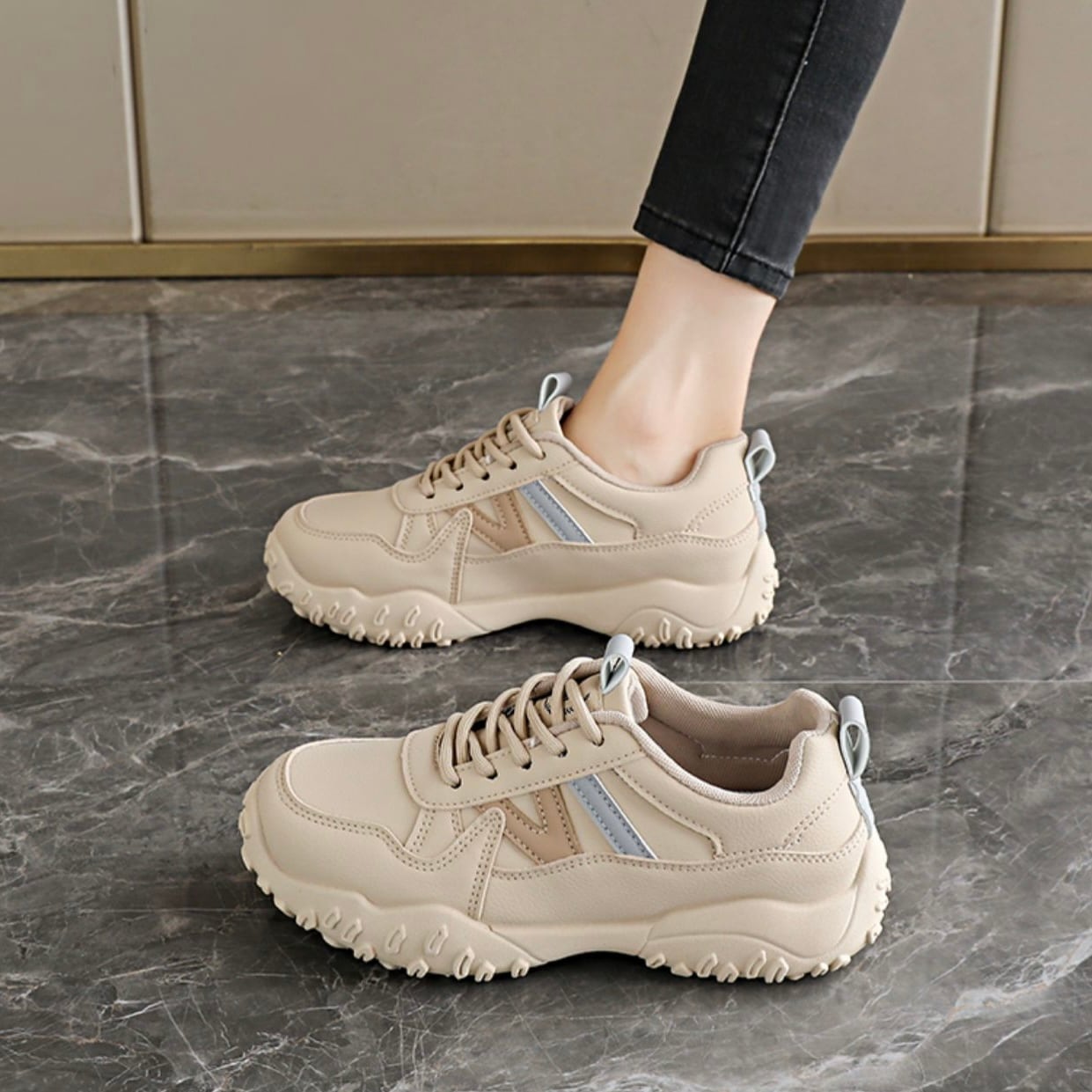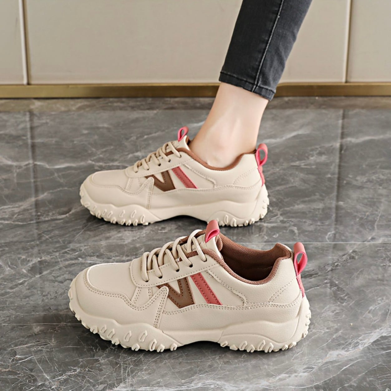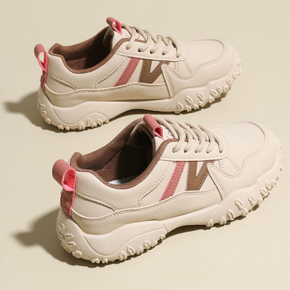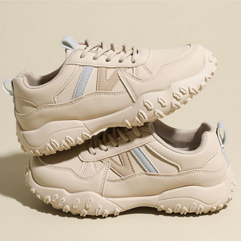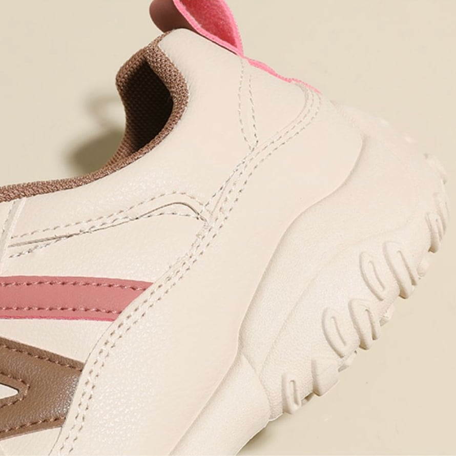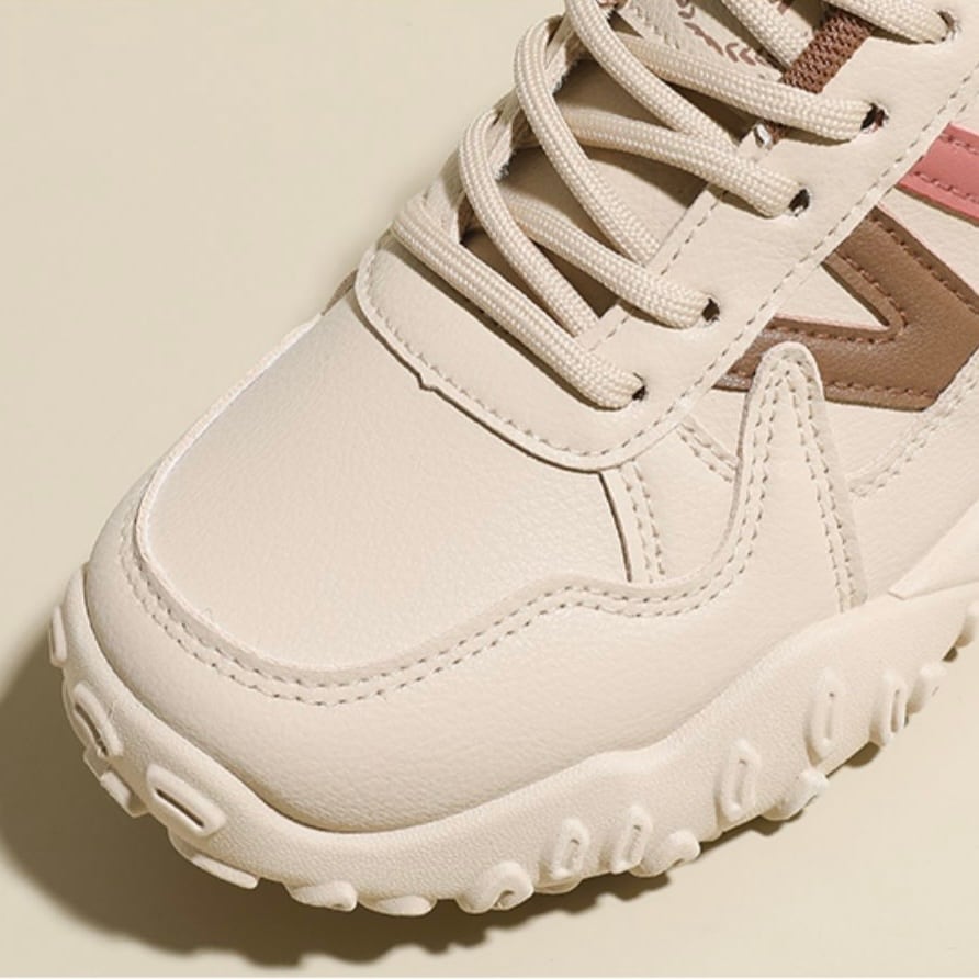アッパーに配色ラインをあしらった、程よく存在感のあるスニーカー。