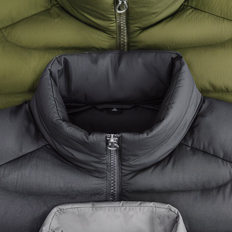 軽量ながらしっかり暖かいスタンドカラーダウンジャケット。