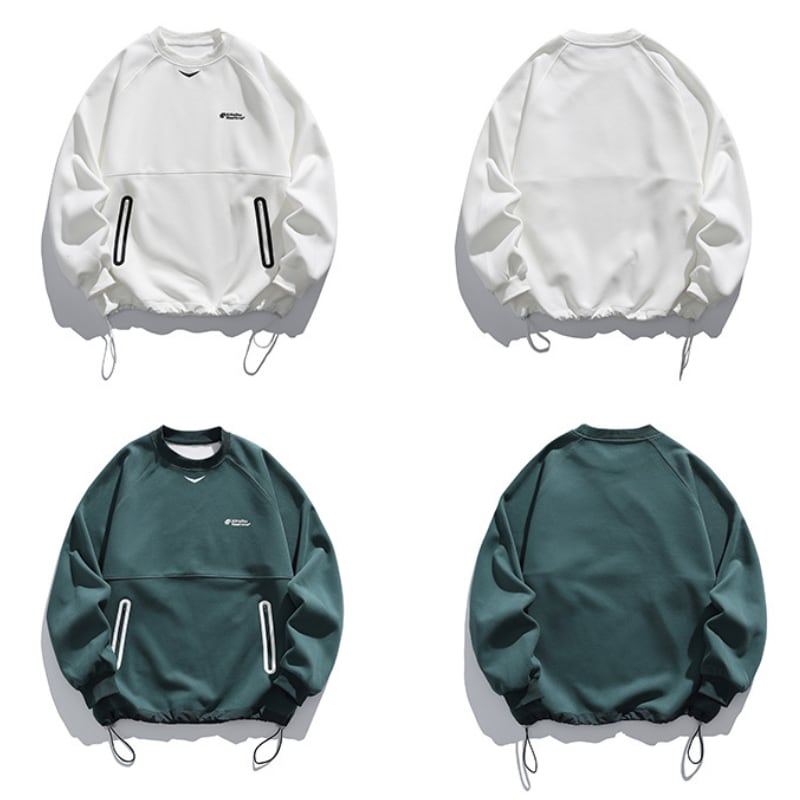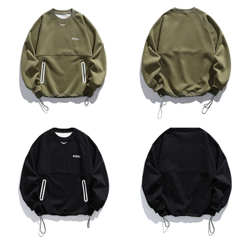 裾のドローストリングが特徴のスウェットプルオーバー。
