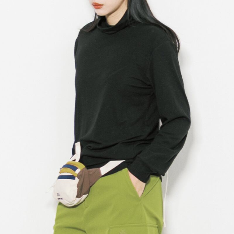 シンプルながら存在感のあるハイネックデザインのロングスリーブTシャツ。