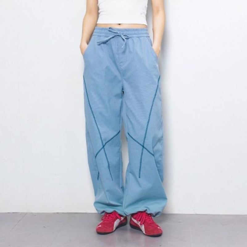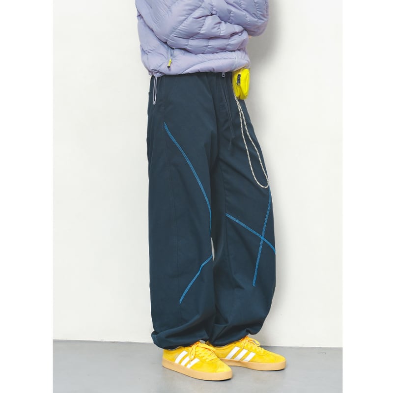 立体的なステッチラインがアクセントになったアウトドアステッチワイドパンツ。