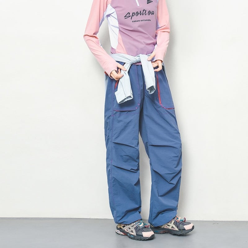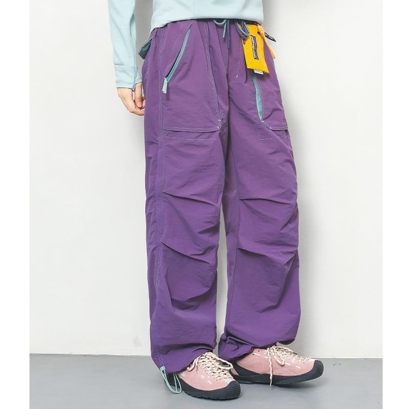 立体感のあるシルエットが魅力のドローストリングカーゴパンツです。
