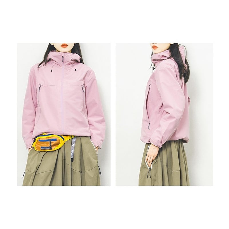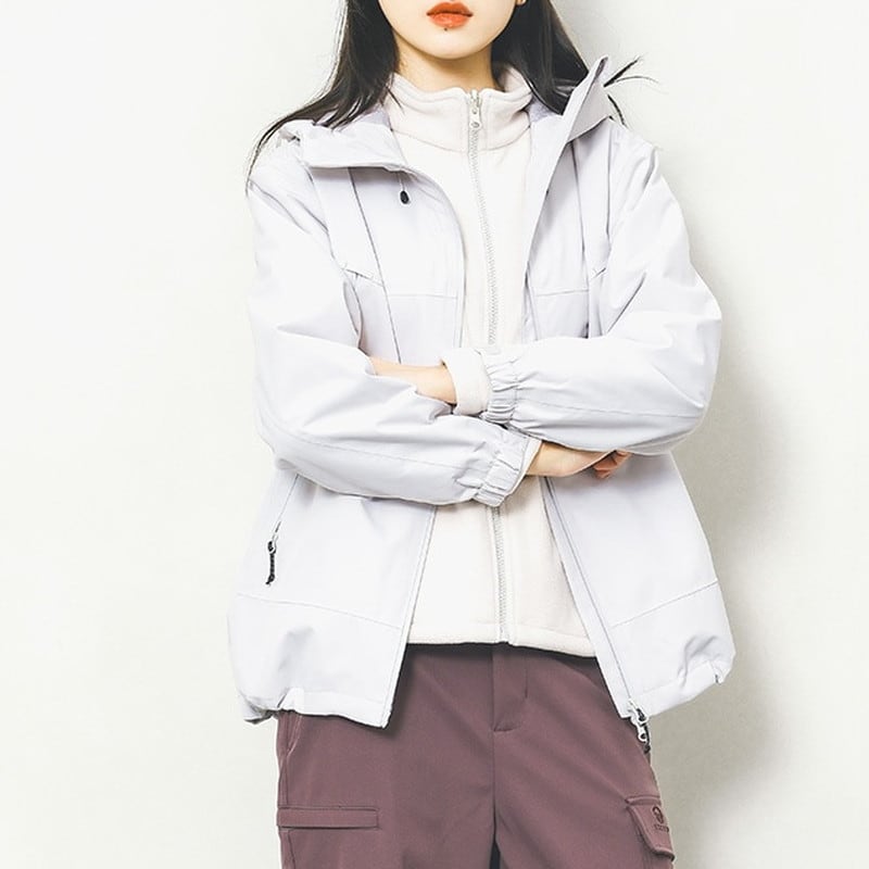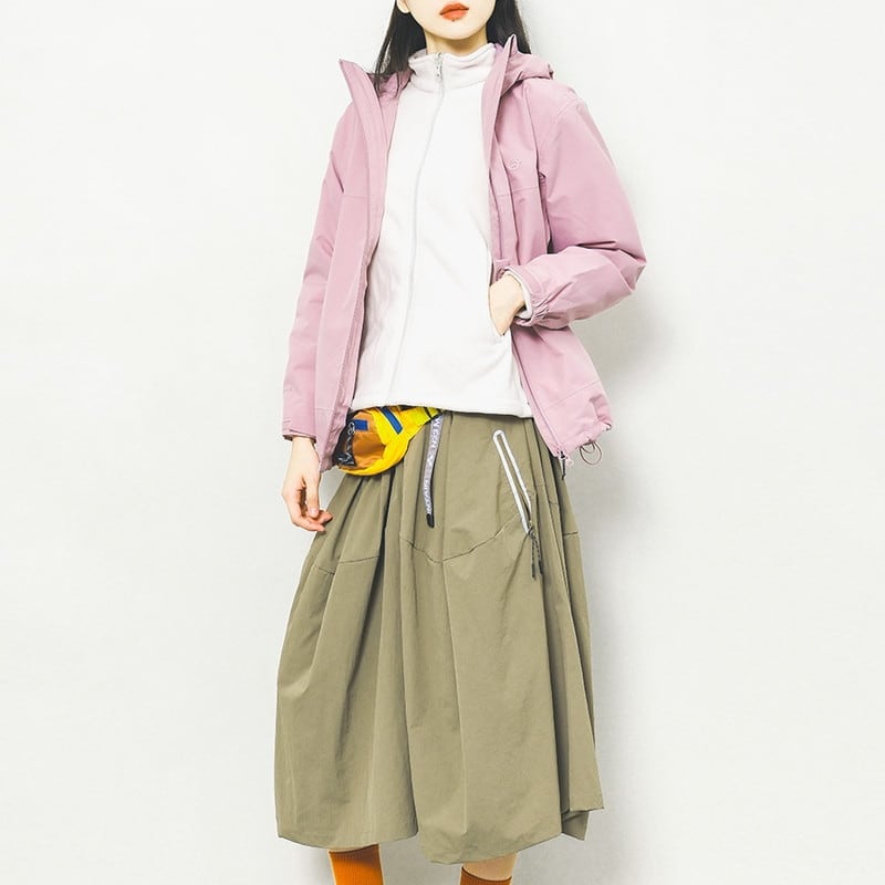 高めのネックデザインが顔まわりをすっきり見せながら、アウトドアらしいムードをさりげなくプラスしてくれます。