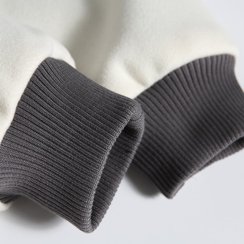 ツイード調のボディと配色スリーブがアクセントになり、ほどよくルーズなシルエットで抜け感のある着こなしに。