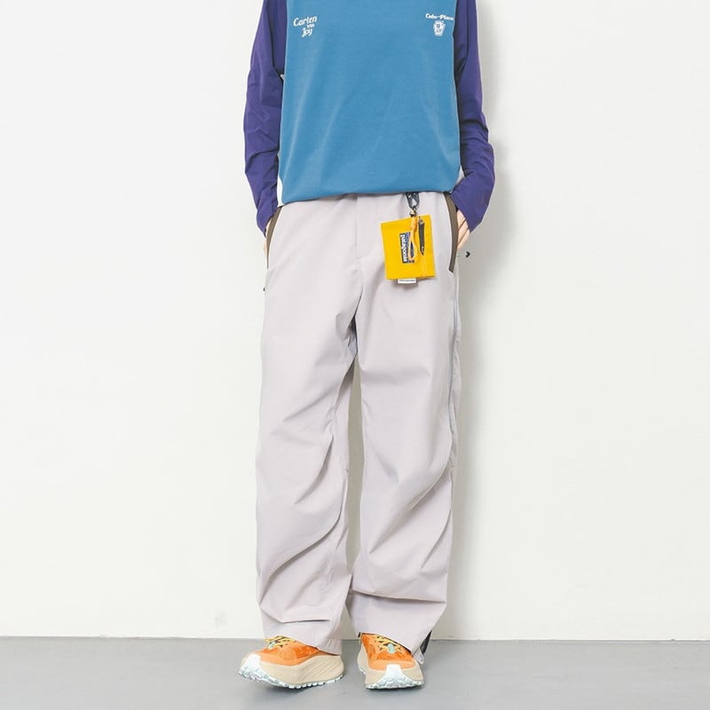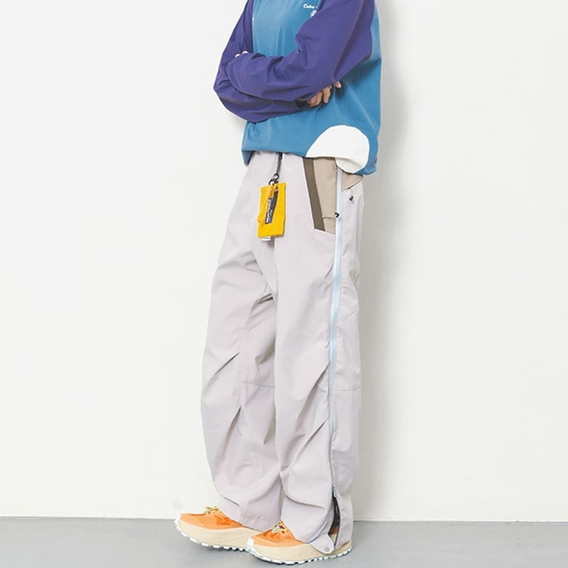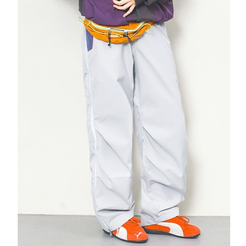 スポーティな雰囲気の中に、淡いカラーがやわらかさを添えるサイドラインワイドアクティブパンツです。