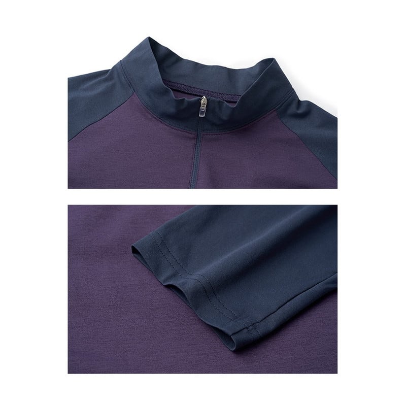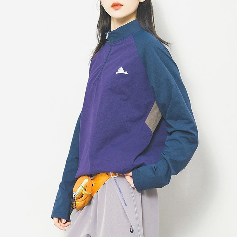 スポーティな雰囲気が魅力のカラーブロックハーフジップトップスです。