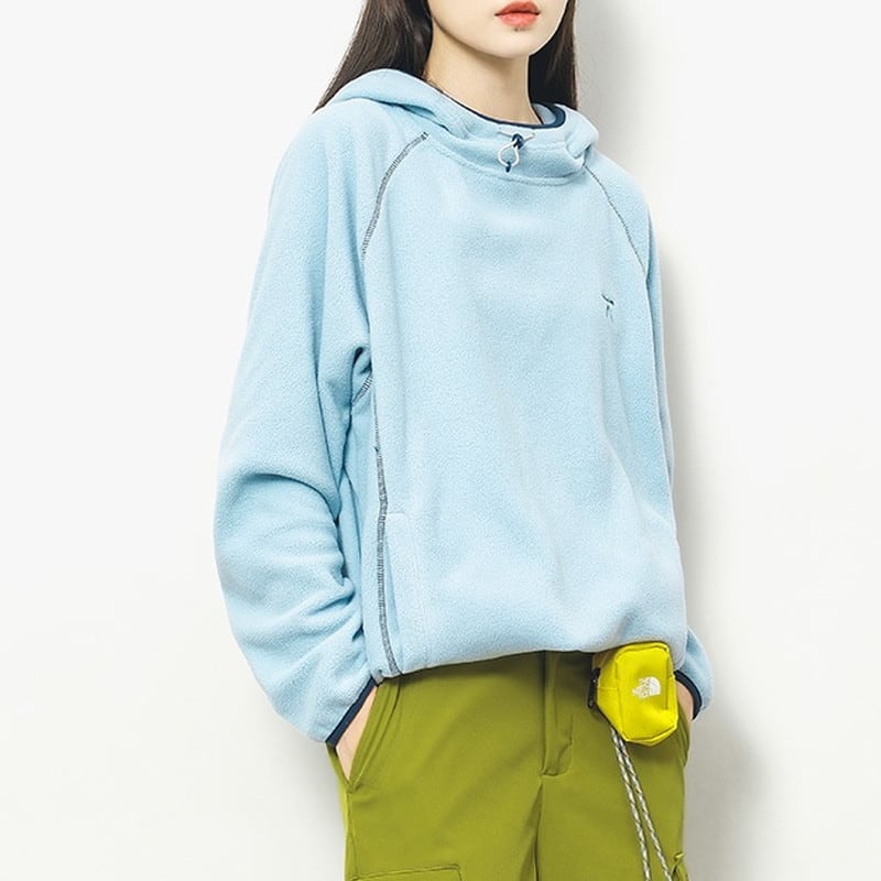 配色のステッチがアクセントになるフリースプルオーバーです。