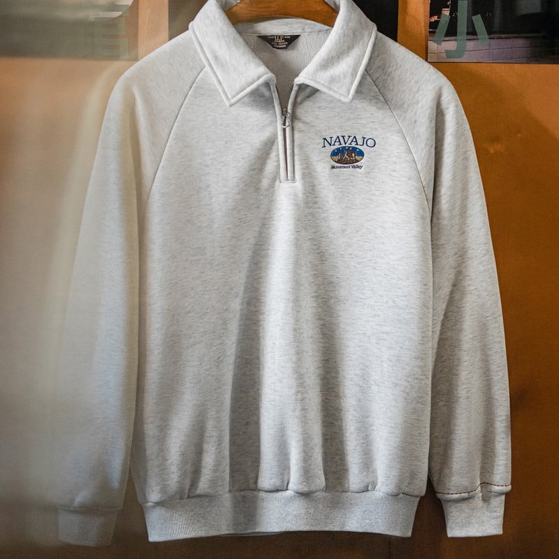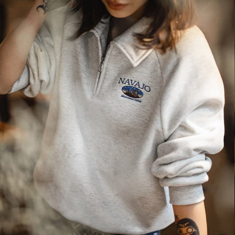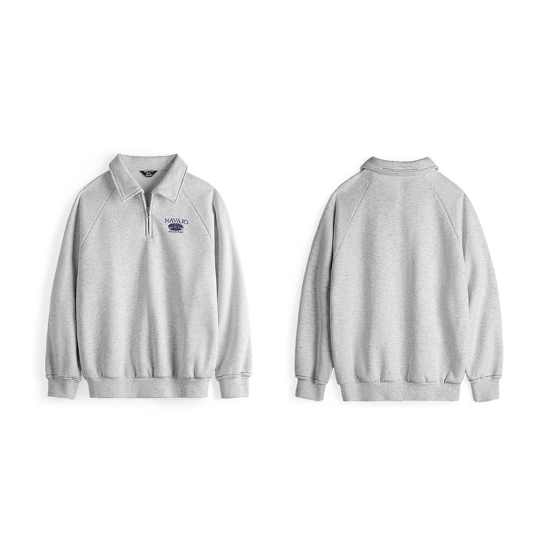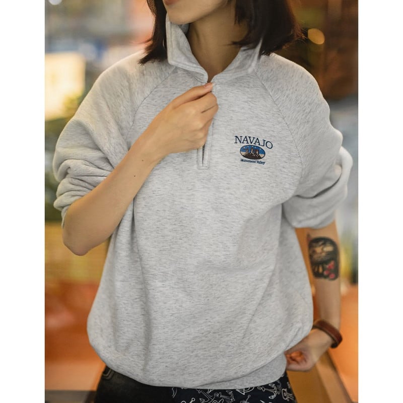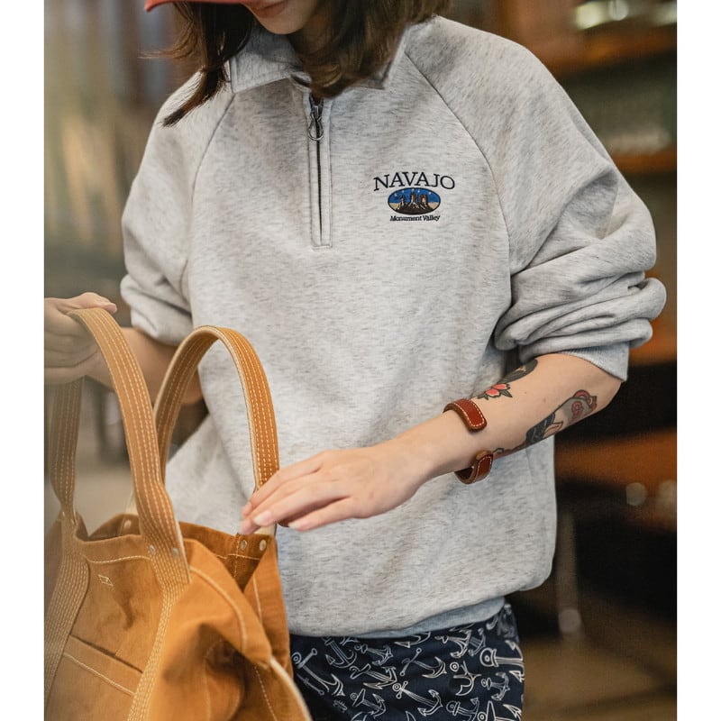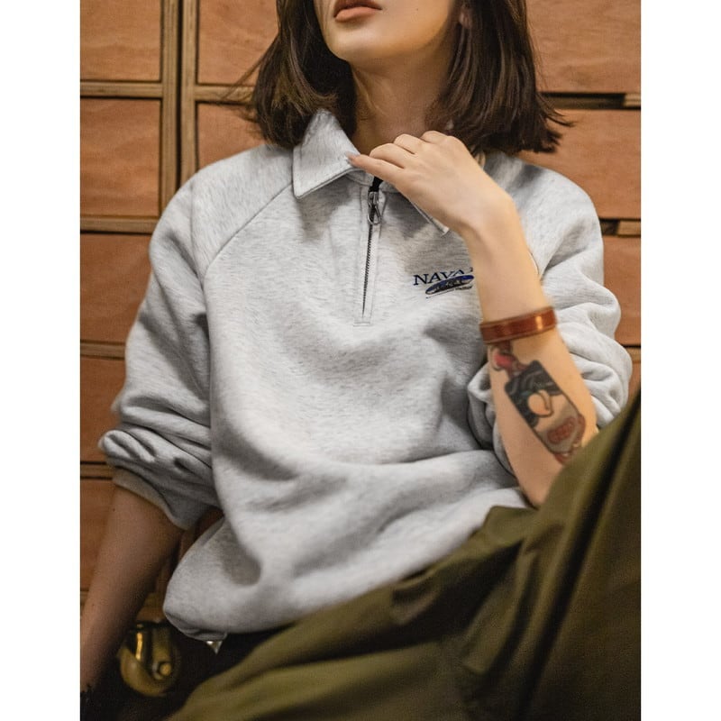 ほどよい抜け感が心地よいハーフジップ刺繍スウェットです。