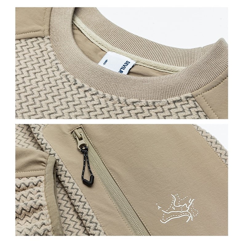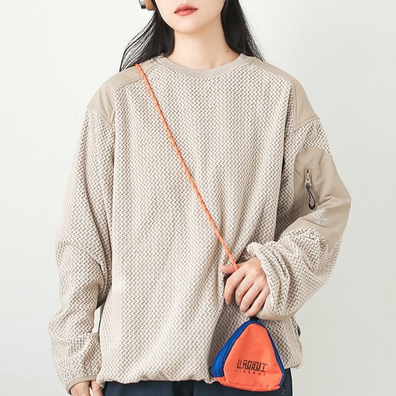 肩や袖口の切り替えがアクセントとなり、シンプルなシルエットに奥行きを添えてくれます。