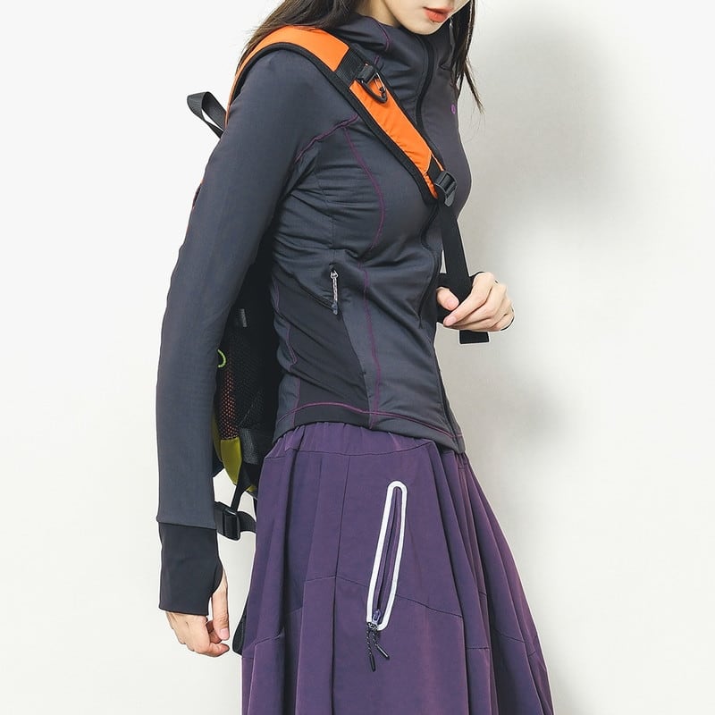 細やかな切り替えデザインがシルエットをすっきりと見せ、アクティブな印象を添える一枚。