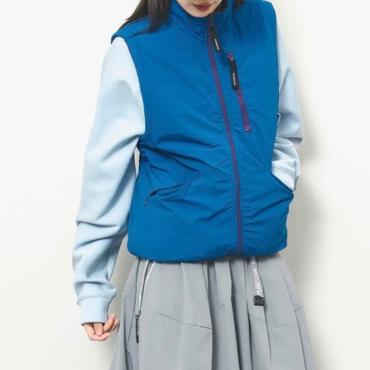 ジップアップのデザインが特徴のリバーシブルベストです。