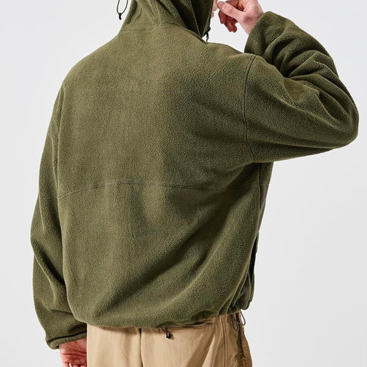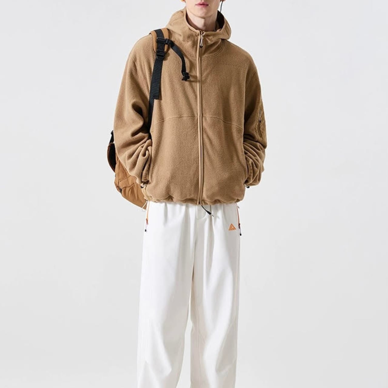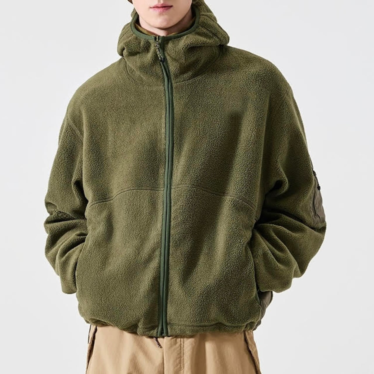 ゆったりとしたオーバーサイズのシルエットで、リラックスした着心地のジップアップジャケットです。