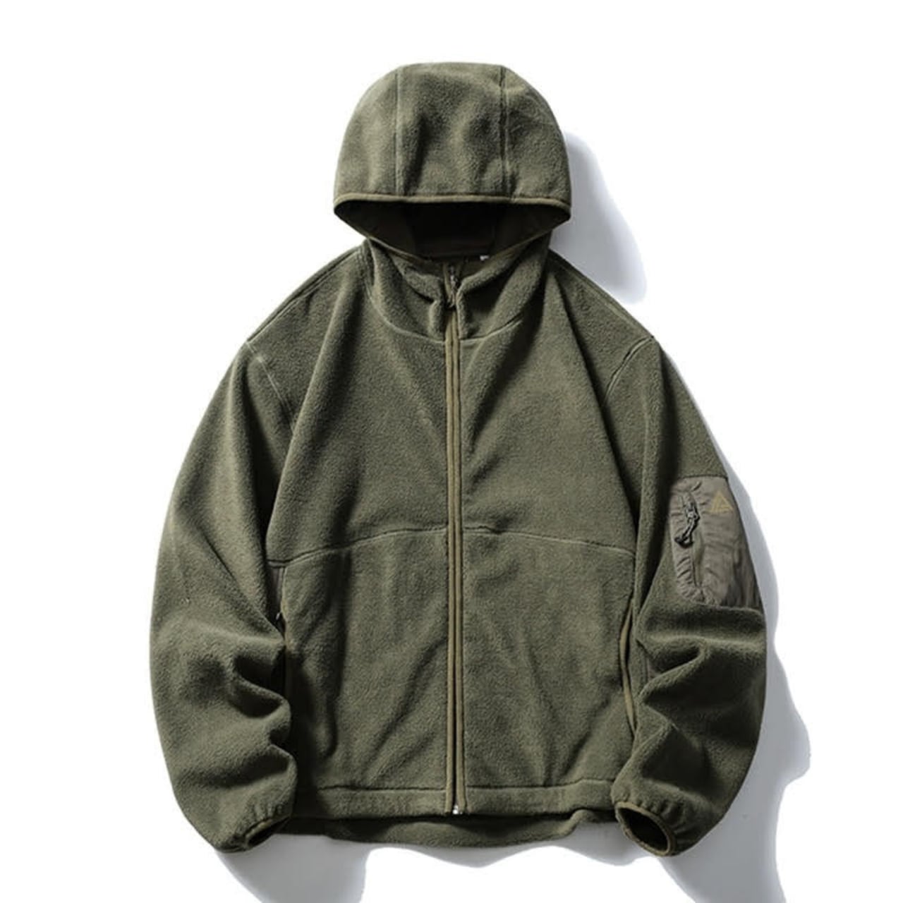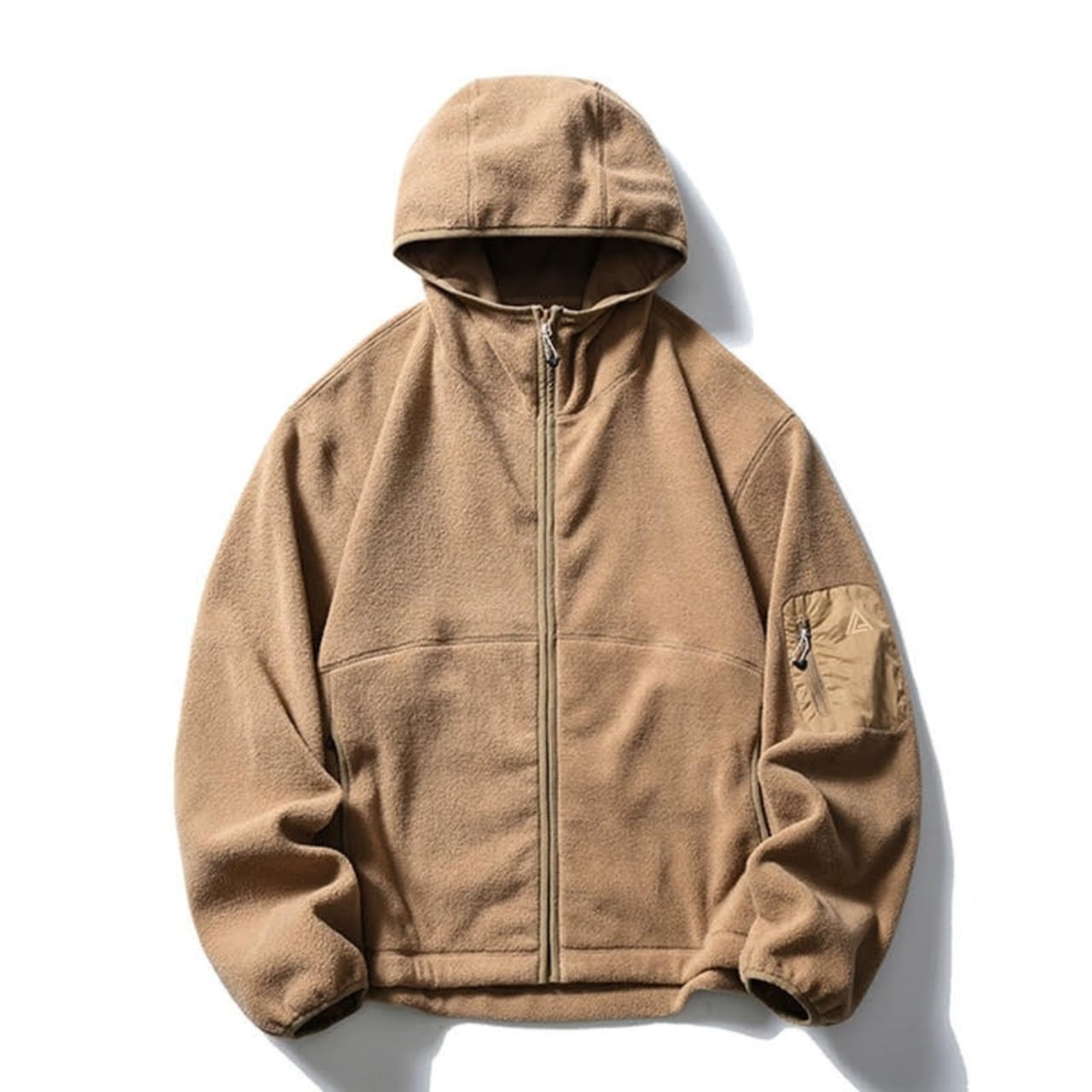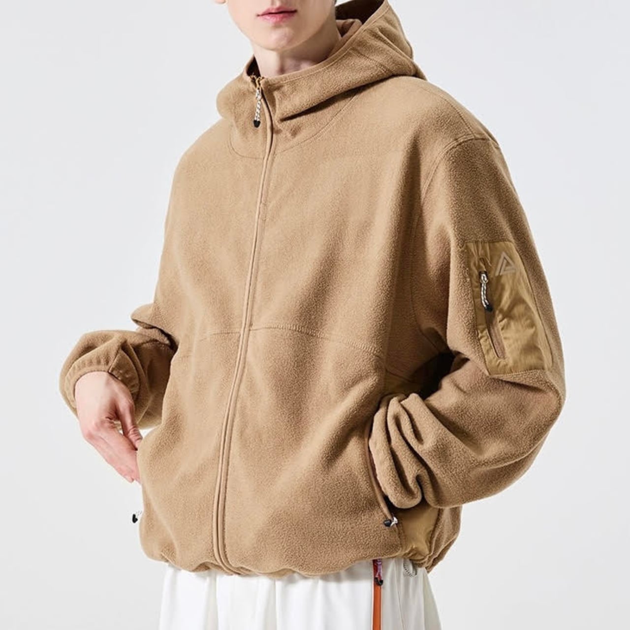 ゆったりとしたオーバーサイズのシルエットで、リラックスした着心地のジップアップジャケットです。