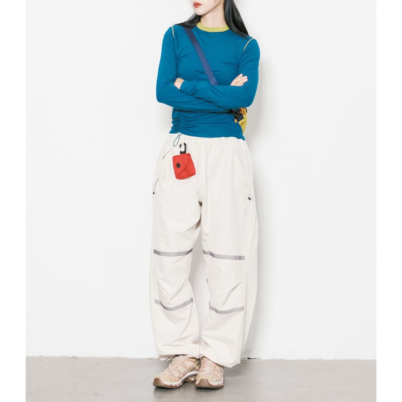 ウエストと裾にはドローコードが施され、好みに合わせてシルエットを調整できます。