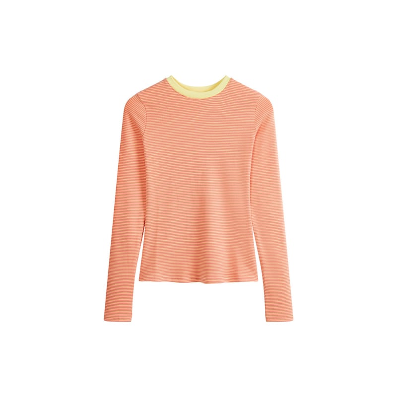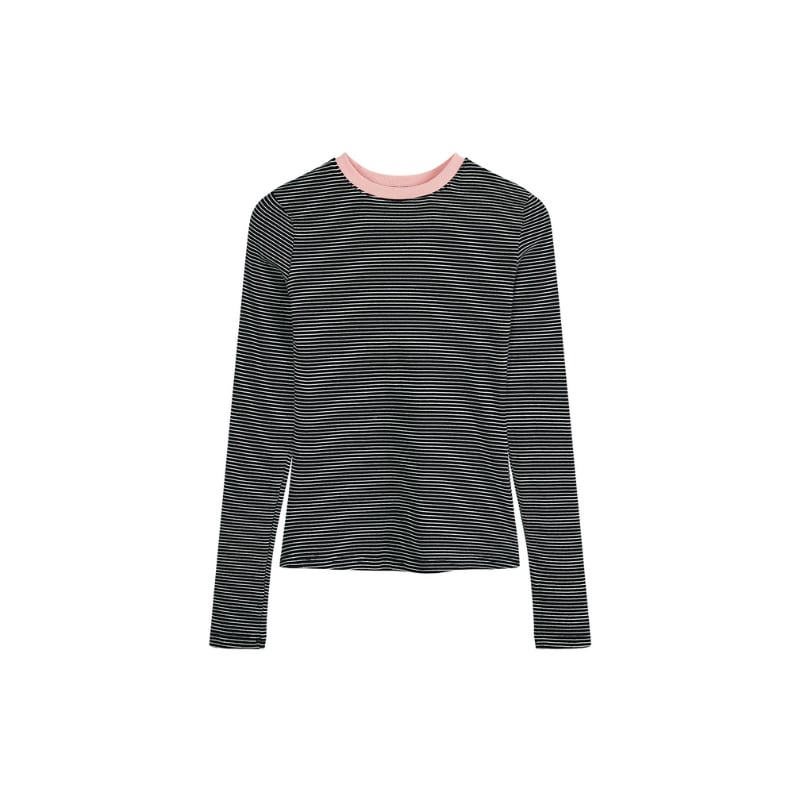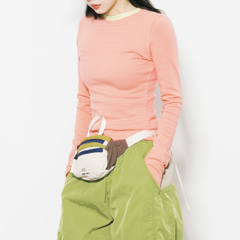 ネックラインに配色を効かせたボーダーロングスリーブTシャツです。