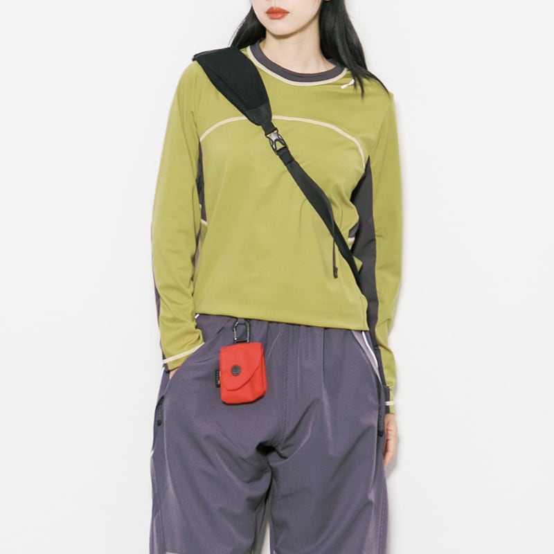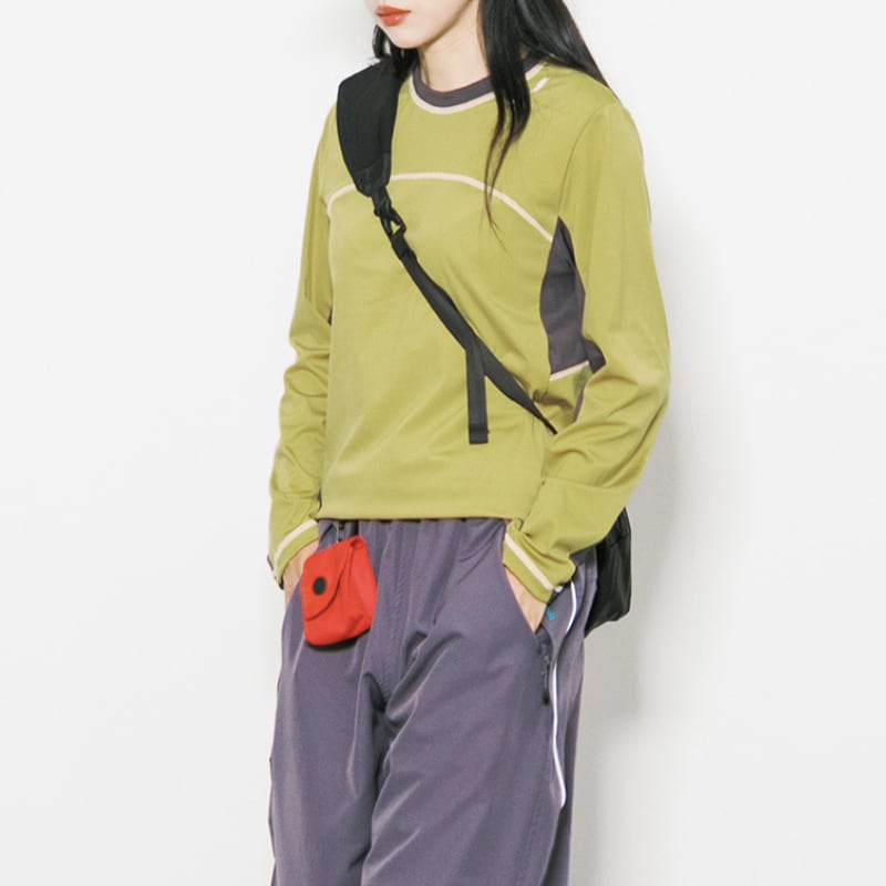 配色ステッチがアクセントになったロングスリーブプルオーバー。