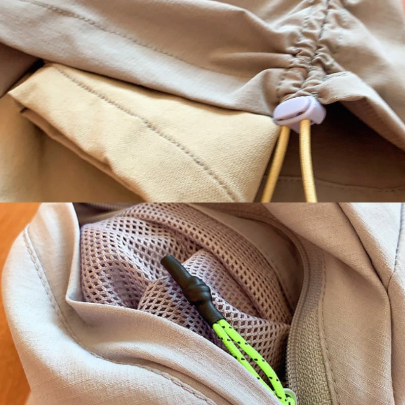 サイドのドローコードで丈感やシルエットを調整でき、スタイルに合わせた着こなしができます。