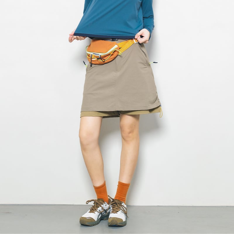 ショーツ一体型で安心感のあるアウトドアスカート。