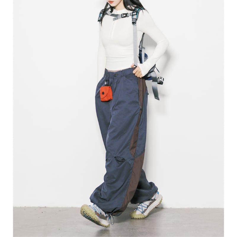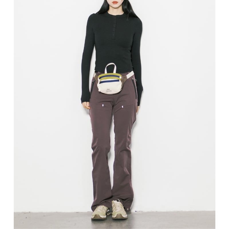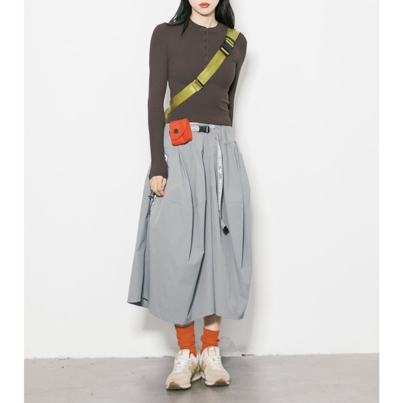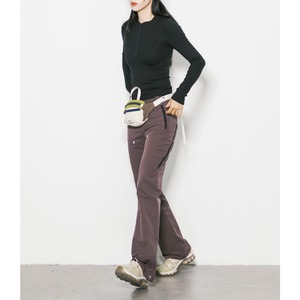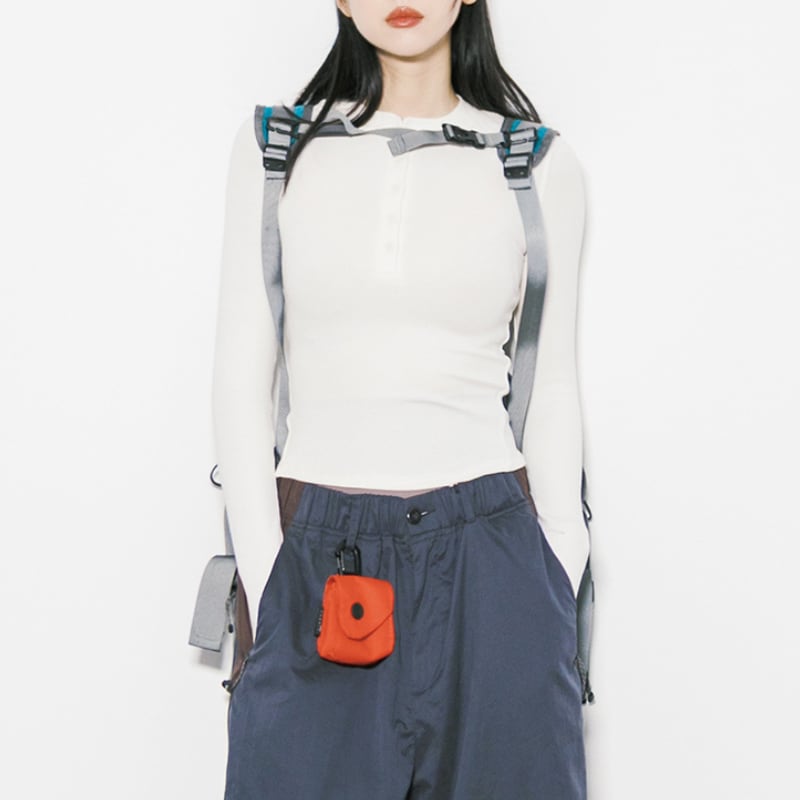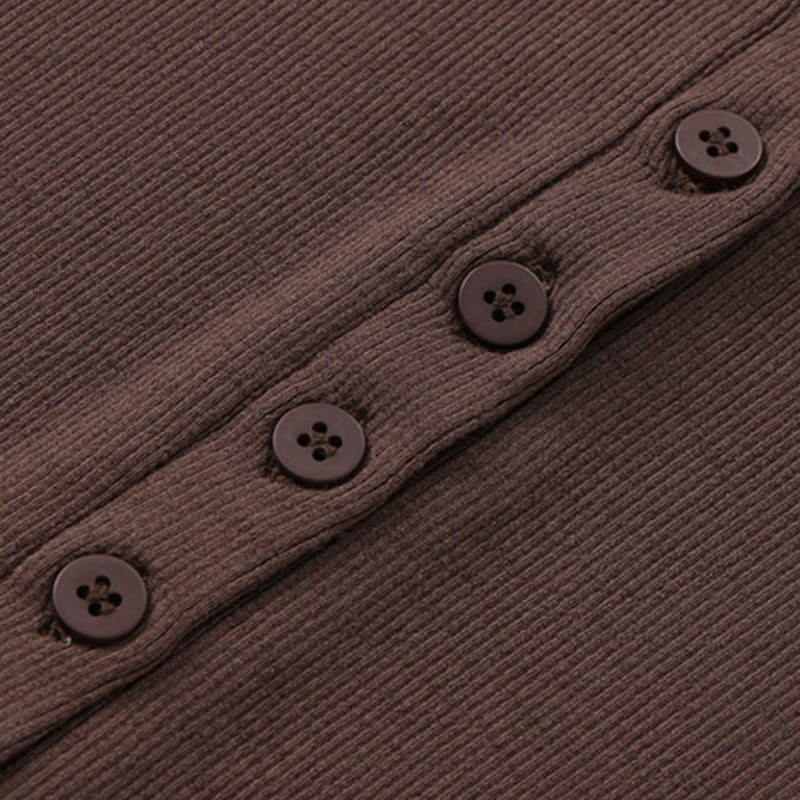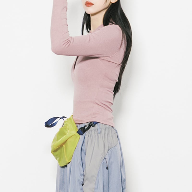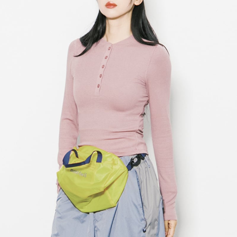 細めのリブ素材で程よくフィットするヘンリーネックトップス。