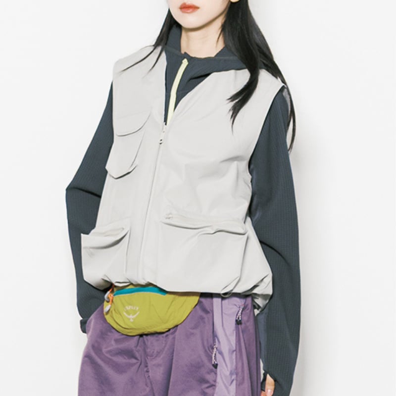 大きめのフラップポケットがポイントになり、外での持ち物を整理しやすいデザインです。