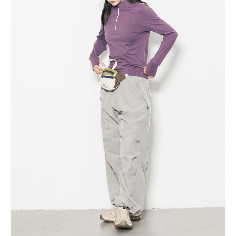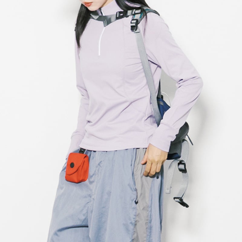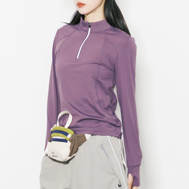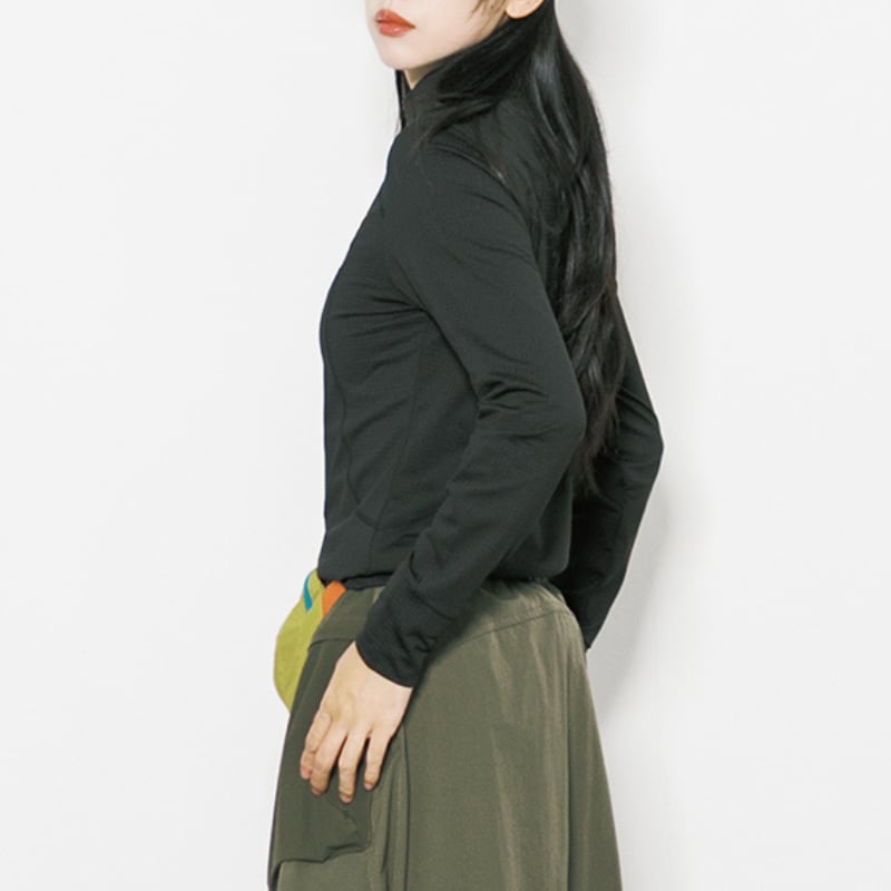 首元をすっきり見せるハーフジップ仕様のロングスリーブトップです。