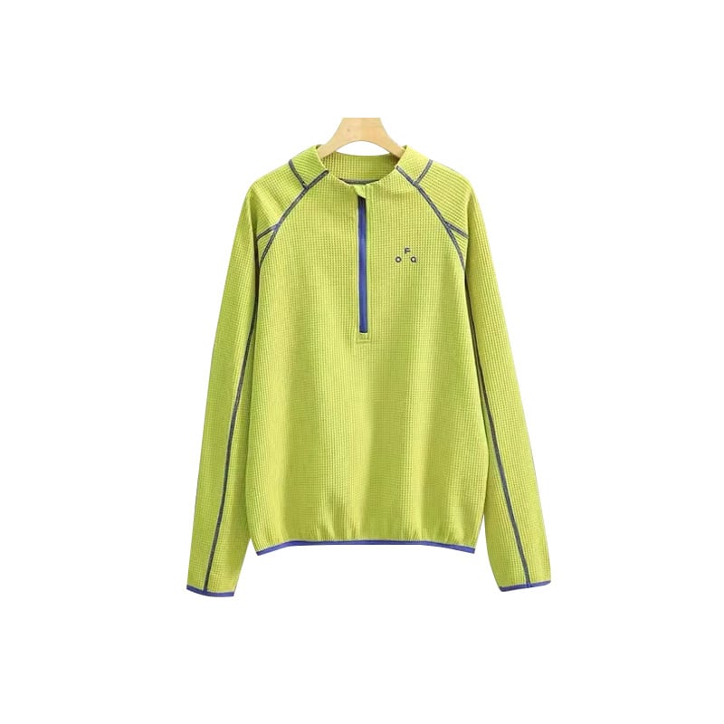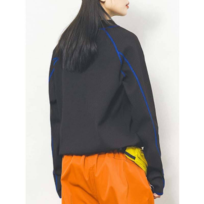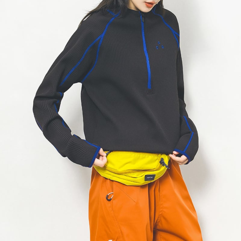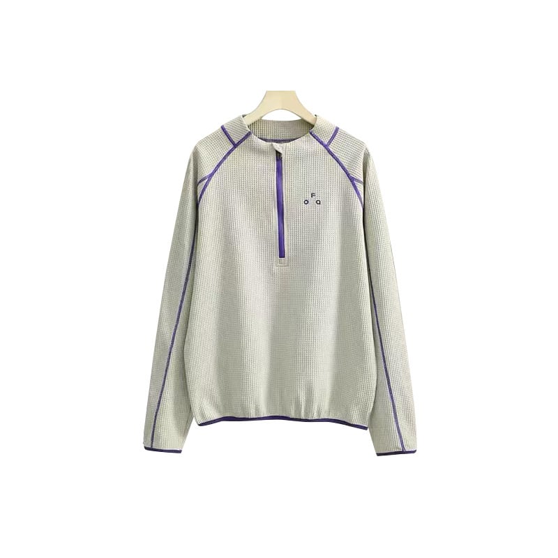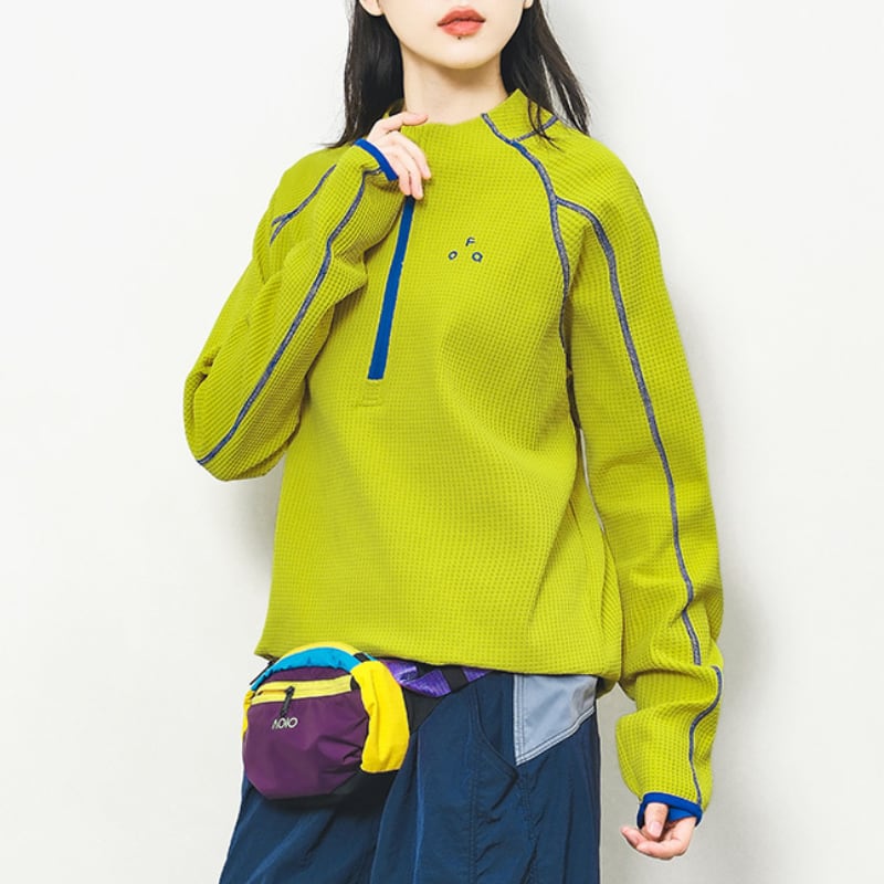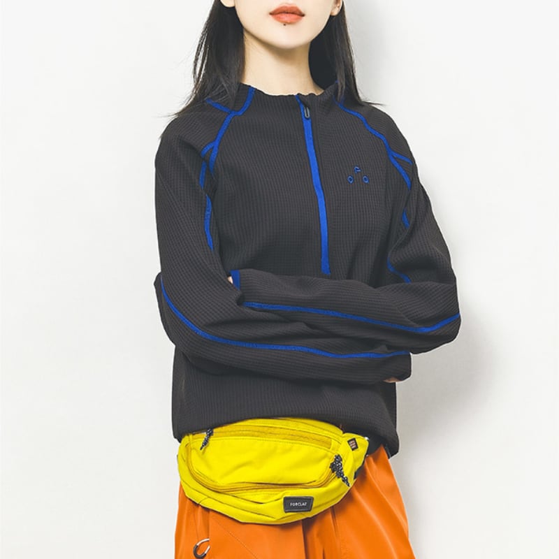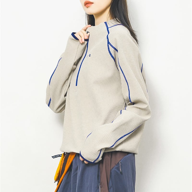 ハーフジップ仕様で体温調節がしやすく、アクティブな場面でも快適に着られます。