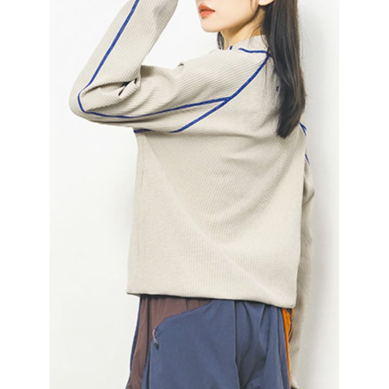 袖や肩のラインに入ったコントラストステッチがコーデのアクセントになります。