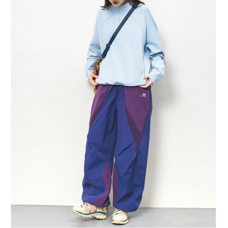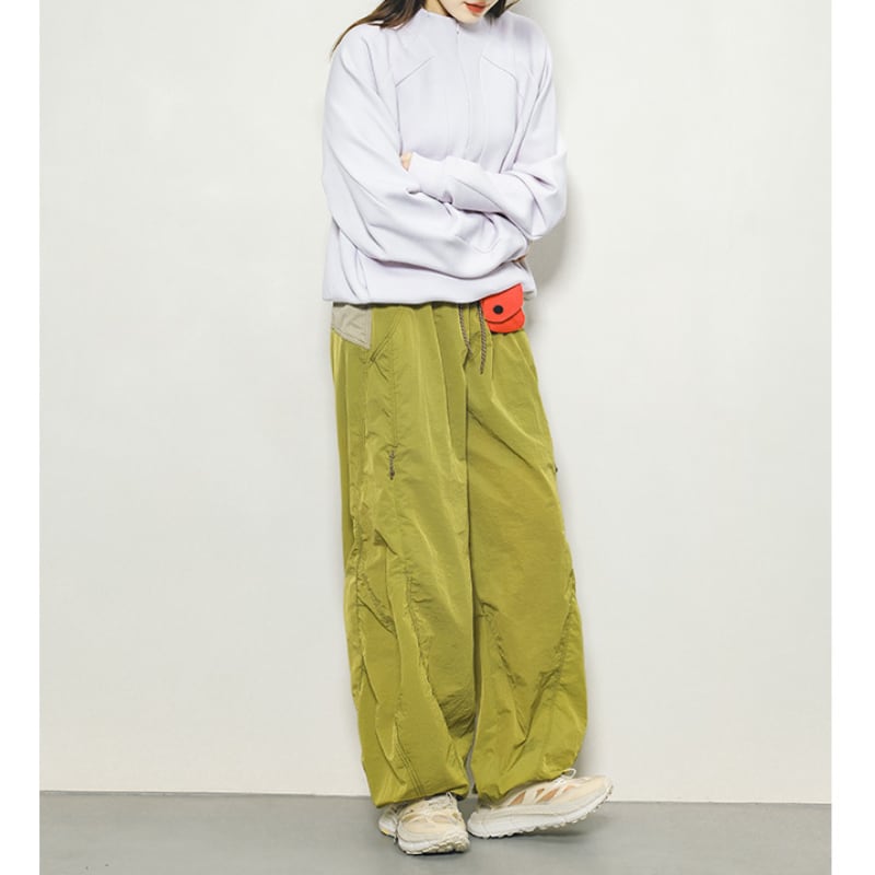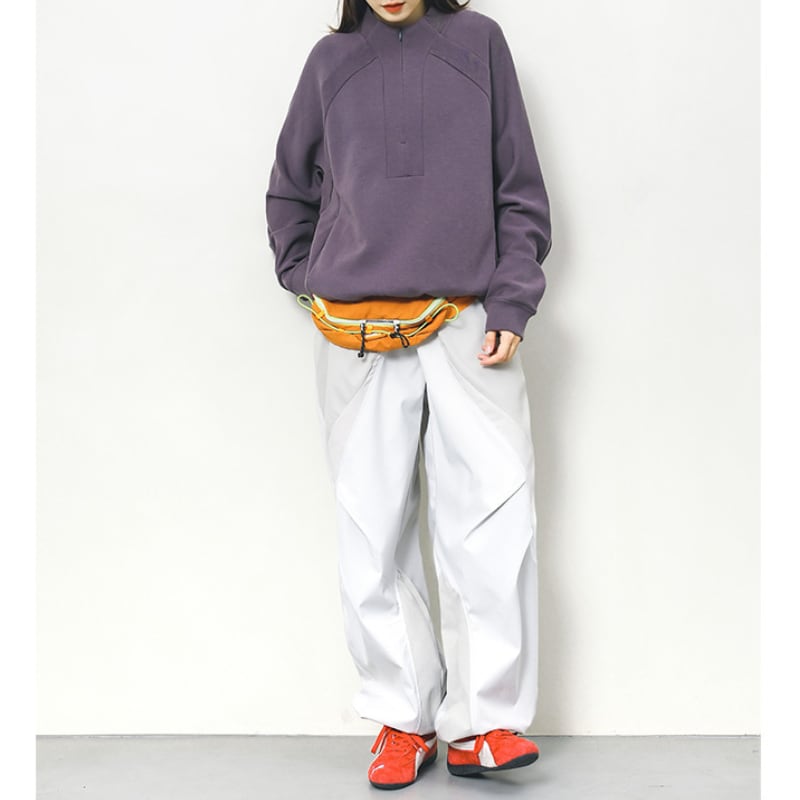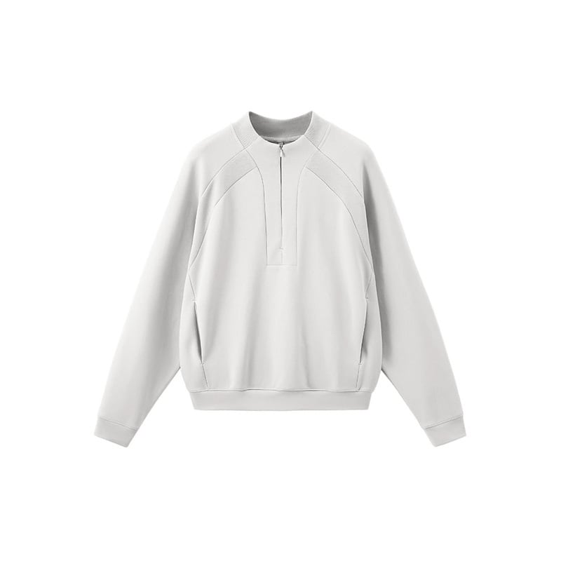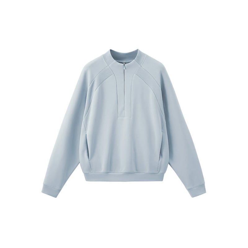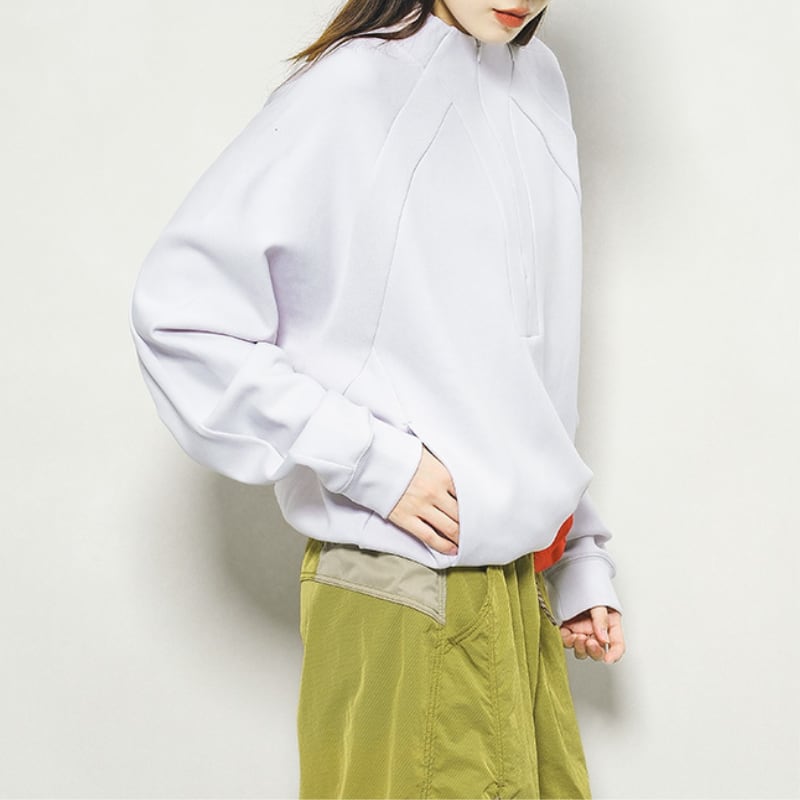 胸元のジップをアクセントにしたすっきり見えのスウェットプルオーバー。